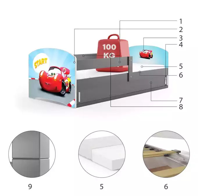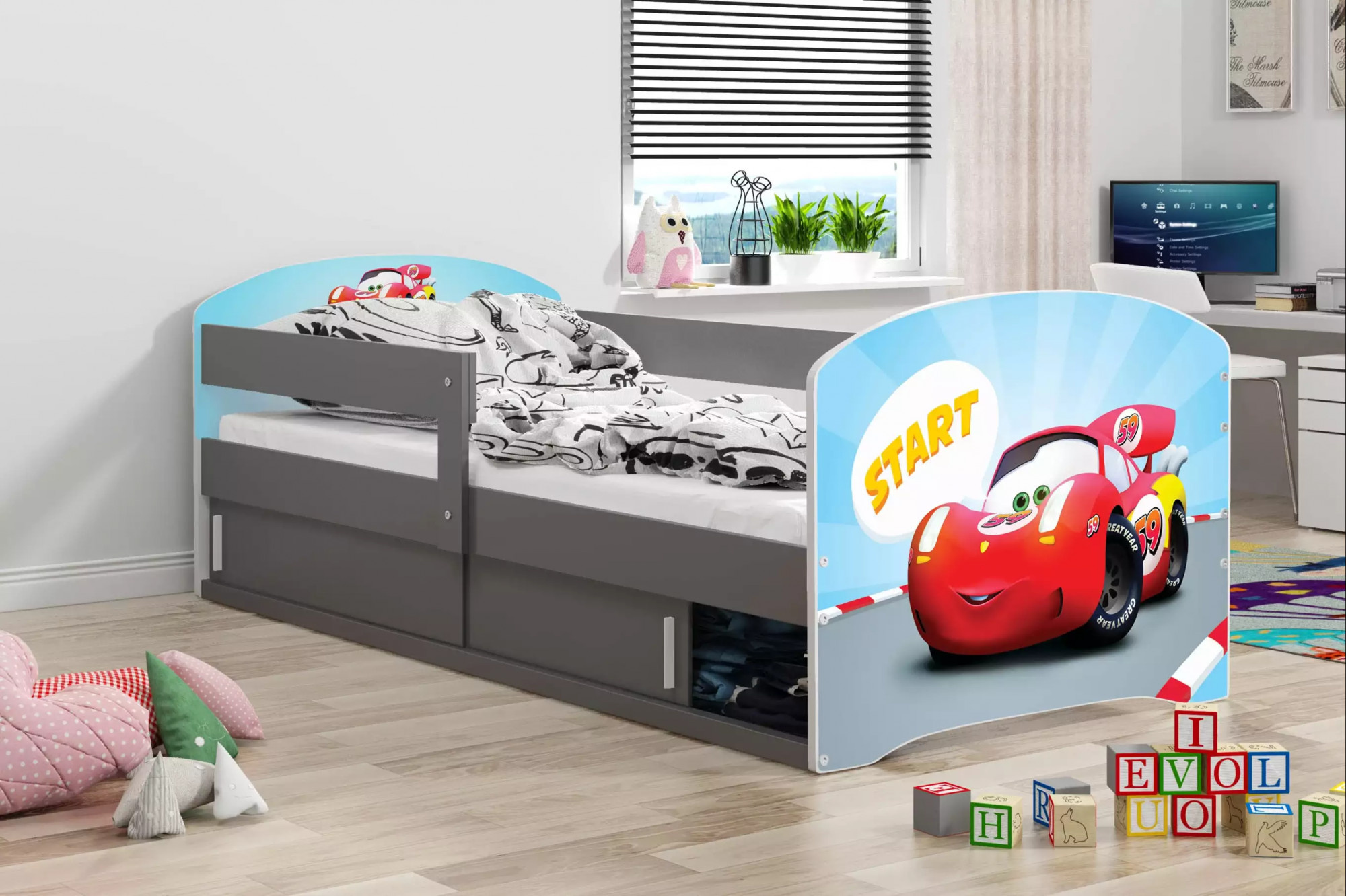Dětská postel LUKI 1 s matrací, Grafit/Auto