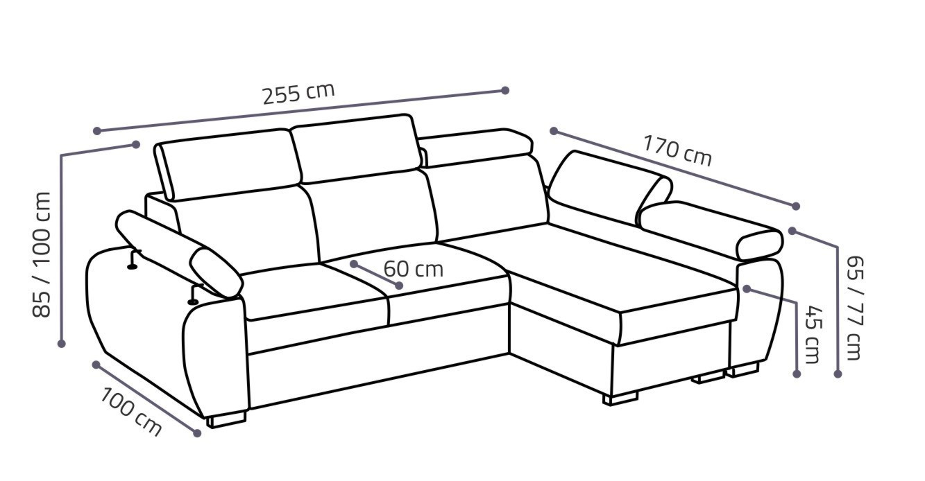 Sedací souprava Bodie se stane příjemným centrem odpočinku, nebo setkání s rodinou a přáteli. Je velmi pohodlná, praktická a nabízí dostatek místa k sezení. Praktickou stránkou sedací soupravy je možnost rozložení k příležitostnému přespání a také nepostradatelný úložný prostor. Pohodlí při sezení zajišťuje výplň sedáků, kterou tvoří kombinace vlnitých pružin s kvalitní PUR pěnou. Při odpočinku, nebo sledování televize Vám zvýší pohodlí polohovací opěrky. Sedací souprava je potažena kvalitní látkou Velluto, která je sametově hebká, nežmolkovatí a má hydrofobní vlastnosti. Tkanina neabsorbuje rozlitou tekutinu, ale vytváří malé kapky na povrchu, které snadno setřete.Tento potahový materiál zanechává na povrchu stopy podle toho, jakým směrem se položí krátký vlas. Sedací soupravu nabízíme v levém i pravém provedení. Vyobrazené doplňky a dekorace nejsou v ceně. Fotografie sedací soupravy v rozkladu jsou pouze ilustrační. Správný barevný odstín je zobrazen na úvodní fotografii.