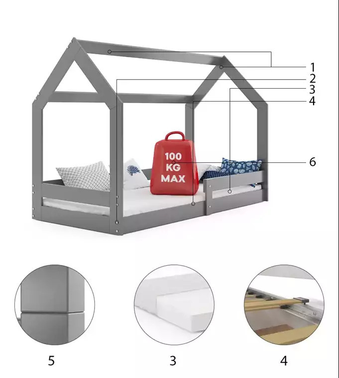 Dětská postel DOMEK 1 bez matrace, Grafit