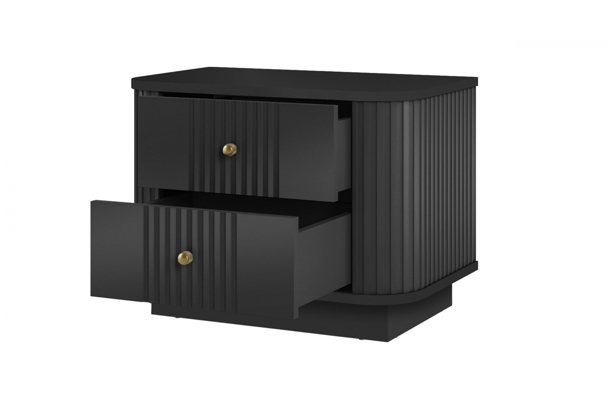 2 x VESPER NOČNÍ STOLEK 56 2SZ - černý MDF / černý MDF / zlaté úchyty / sokl