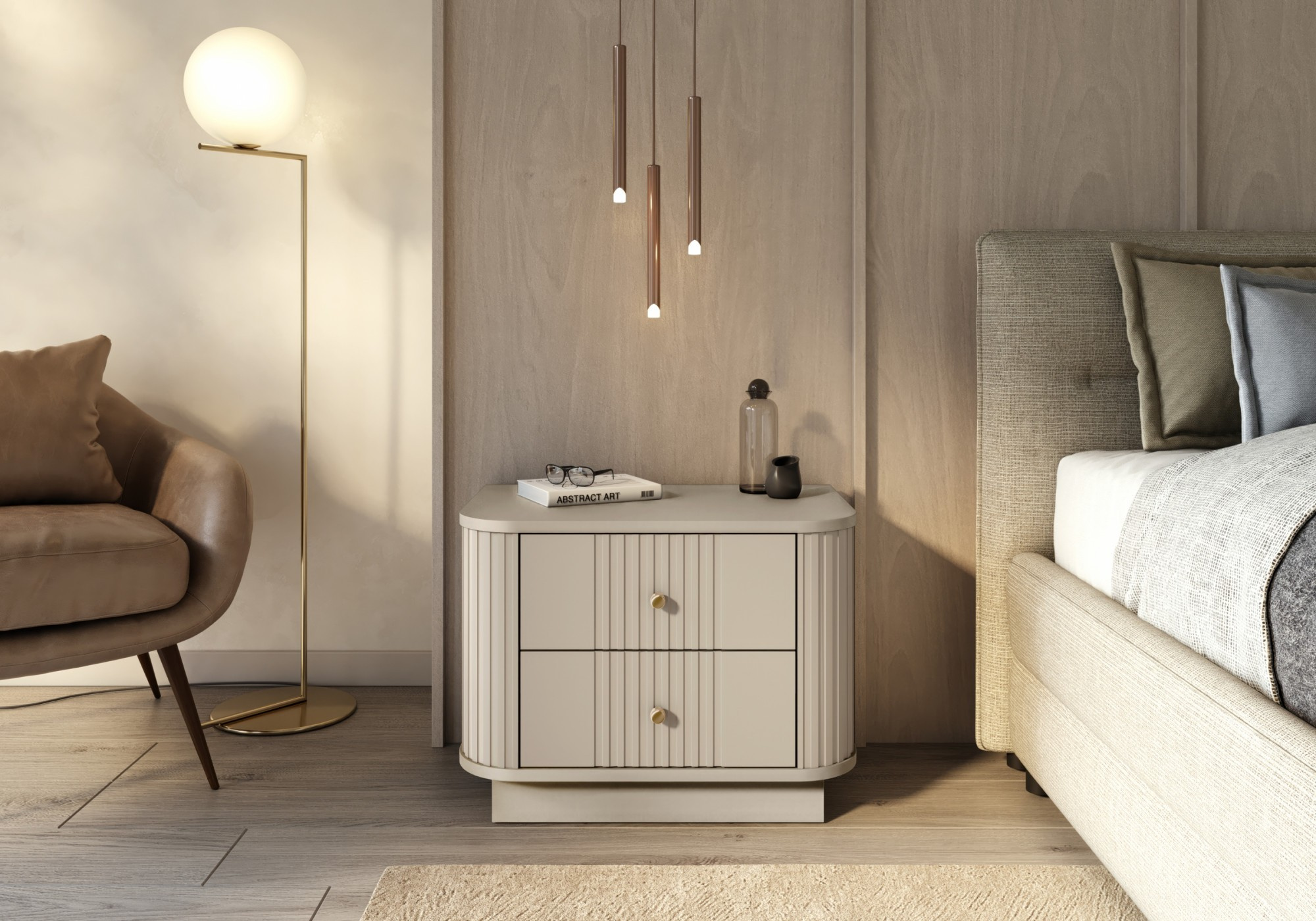 2 x VESPER NOČNÍ STOLEK 56 2SZ - kašmír mdf / kašmír / zlaté úchyty / sokl