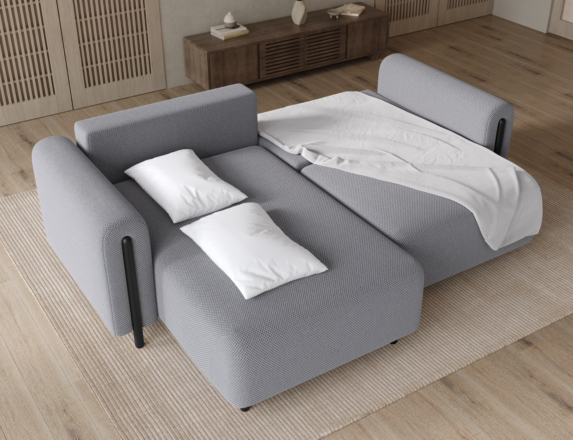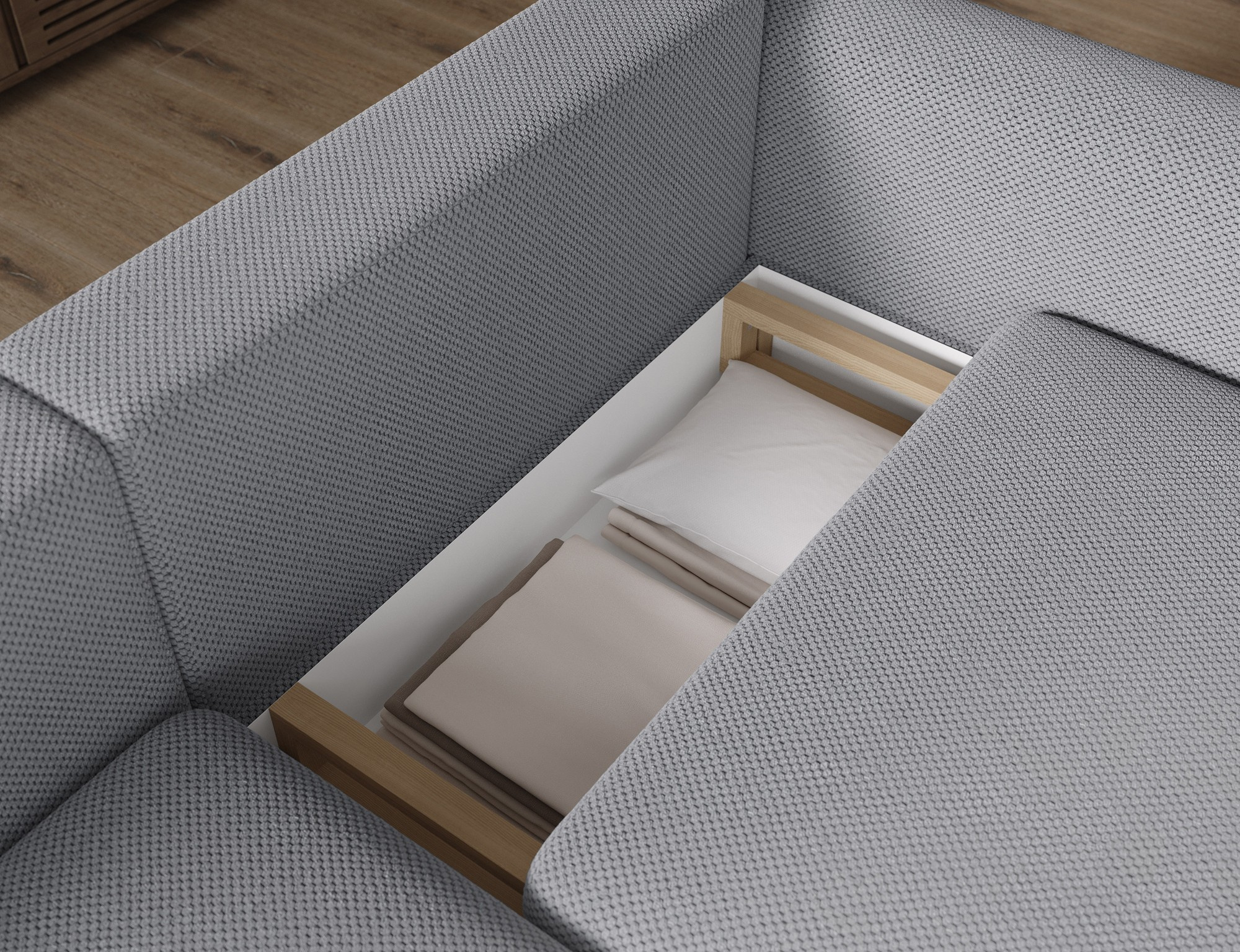Jednou z hlavních výhod této sedací soupravy je její rozkládací mechanismus DL, který umožňuje snadné přeměnění na pohodlné lůžko o rozměrech 130 x 200 cm. To je ideální pro hosty nebo pro ty, kteří si rádi dopřejí odpolední siestu. Navíc je souprava vybavena praktickým úložným prostorem o rozměrech 69x86x17 cm, kde můžete uschovat deky, polštáře nebo jiné drobnosti.