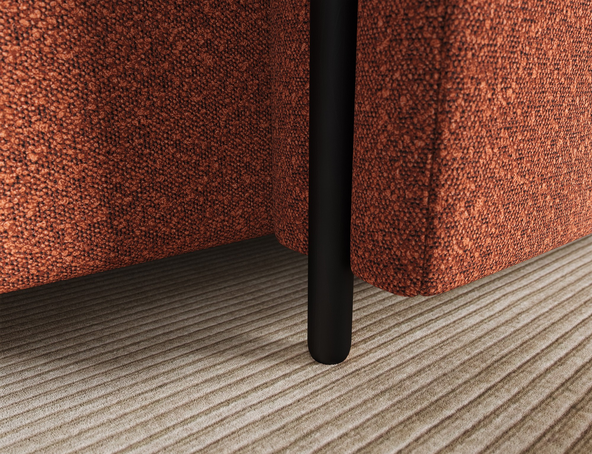 Nosnost sedací soupravy je až 270 kg, což svědčí o její robustnosti a kvalitě zpracování. Nohy jsou vyrobeny z dubového dřeva v elegantní černé barvě a mají výšku 10 cm, což dodává celé soupravě moderní vzhled a stabilitu.