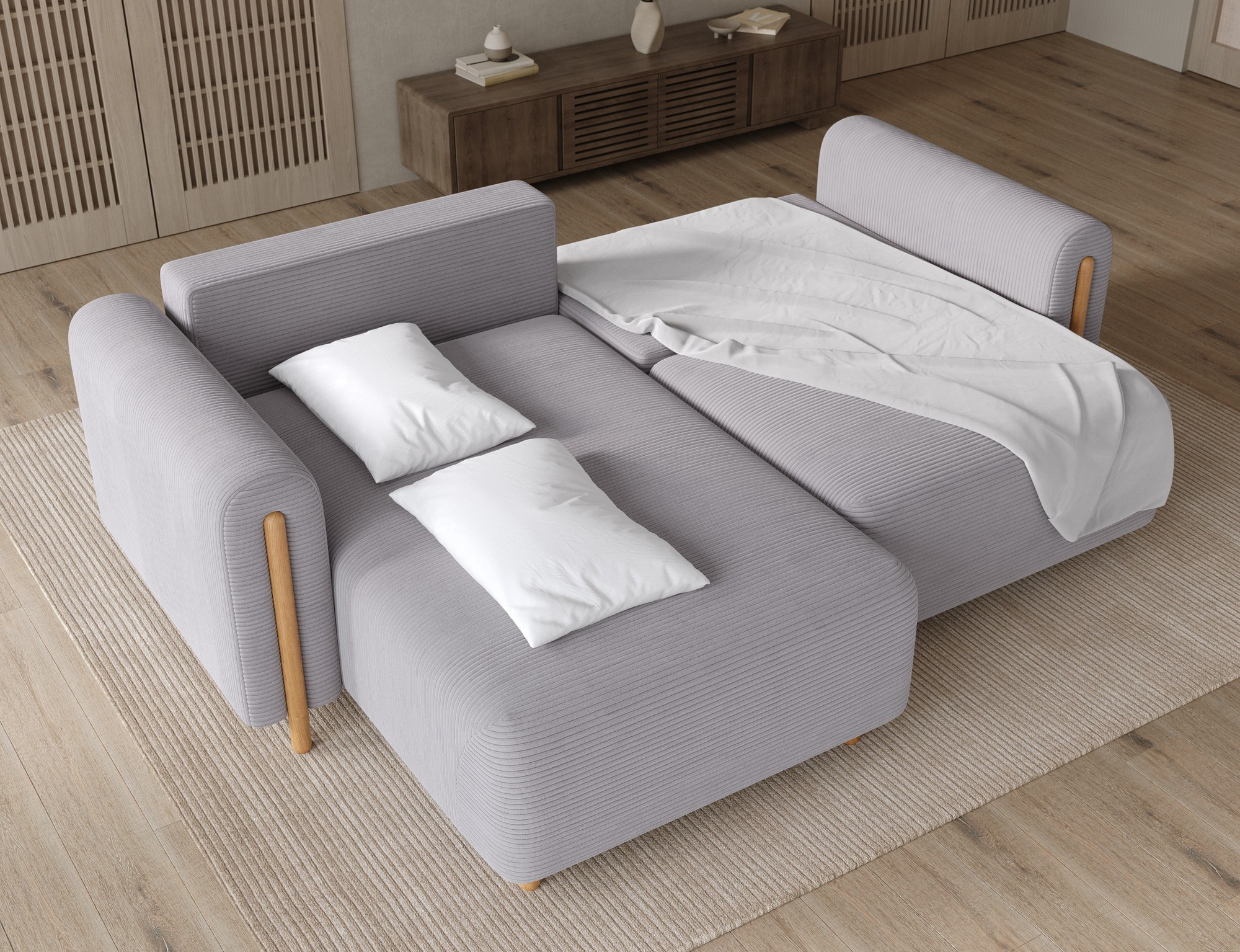- Úložný prostor: Sedací souprava je vybavena praktickým úložným prostorem, který vám umožní snadno uschovat deky, polštáře nebo jiné předměty, které chcete mít po ruce, ale zároveň je mít úhledně uklizené.