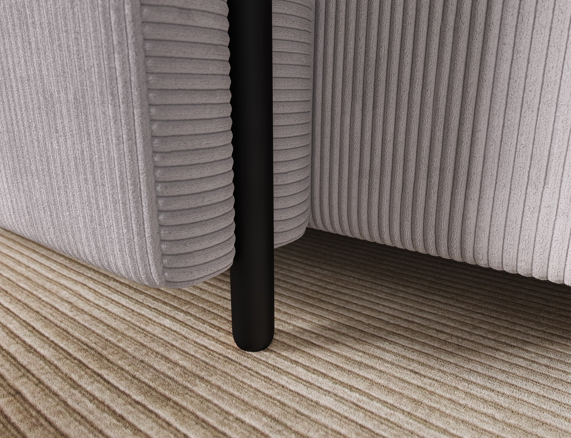 Nosnost sedací soupravy je až 270 kg, což svědčí o její robustnosti a kvalitě zpracování. Nohy jsou vyrobeny z dubového dřeva v elegantní černé barvě a mají výšku 10 cm, což dodává celé soupravě moderní vzhled a stabilitu.