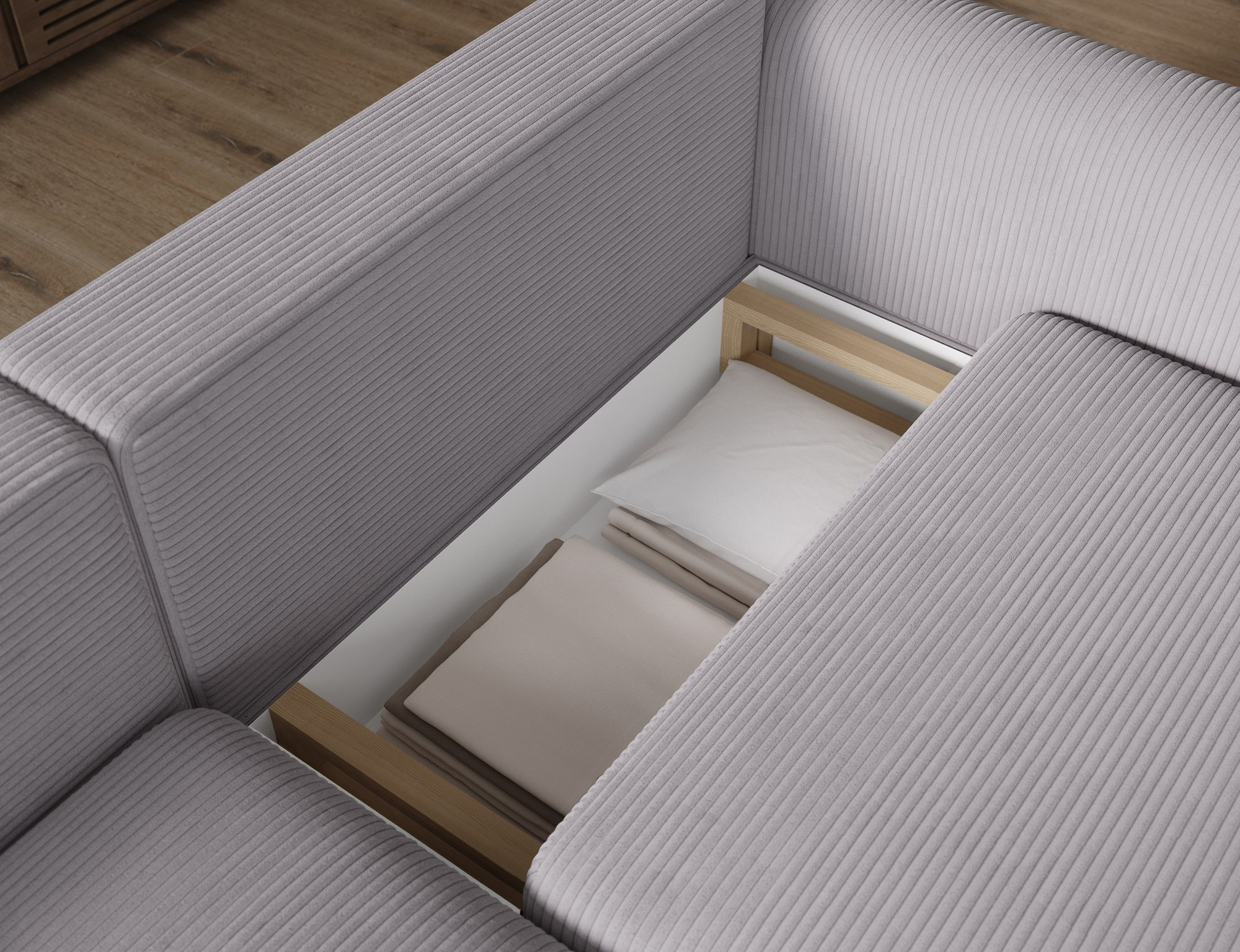 Jednou z hlavních výhod této sedací soupravy je její rozkládací mechanismus DL, který umožňuje snadné přeměnění na pohodlné lůžko o rozměrech 130 x 200 cm. To je ideální pro hosty nebo pro ty, kteří si rádi dopřejí odpolední siestu. Navíc je souprava vybavena praktickým úložným prostorem o rozměrech 69x86x17 cm, kde můžete uschovat deky, polštáře nebo jiné drobnosti.