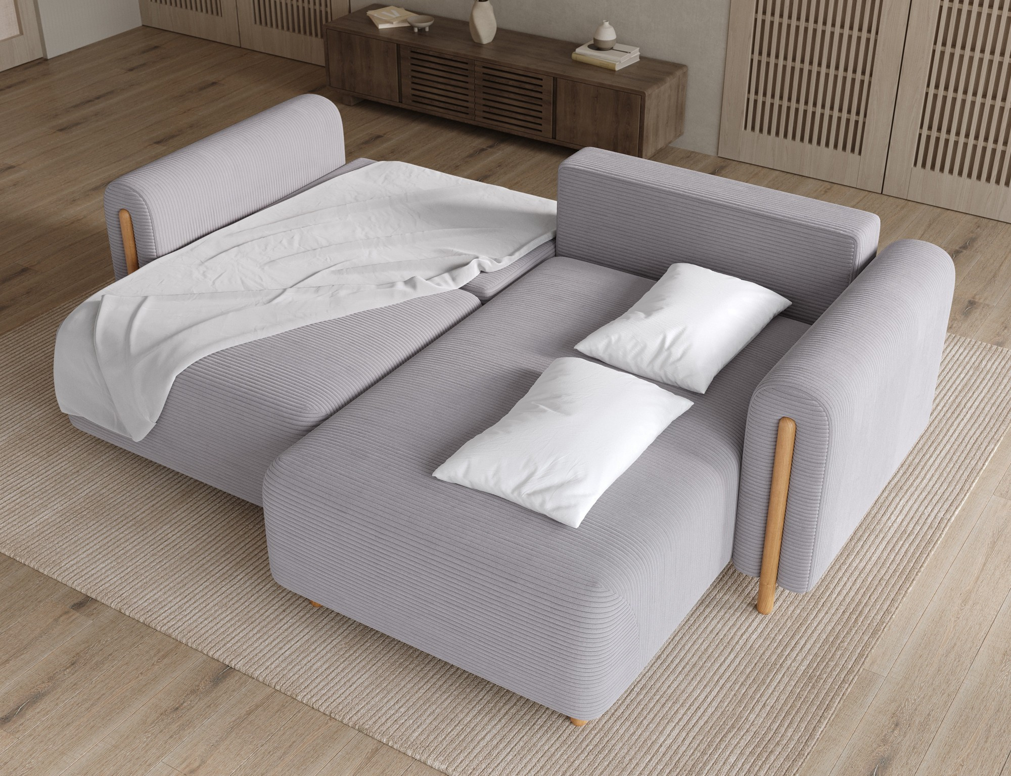 - Úložný prostor: Sedací souprava je vybavena praktickým úložným prostorem, který vám umožní snadno uschovat deky, polštáře nebo jiné předměty, které chcete mít po ruce, ale zároveň je mít úhledně uklizené.