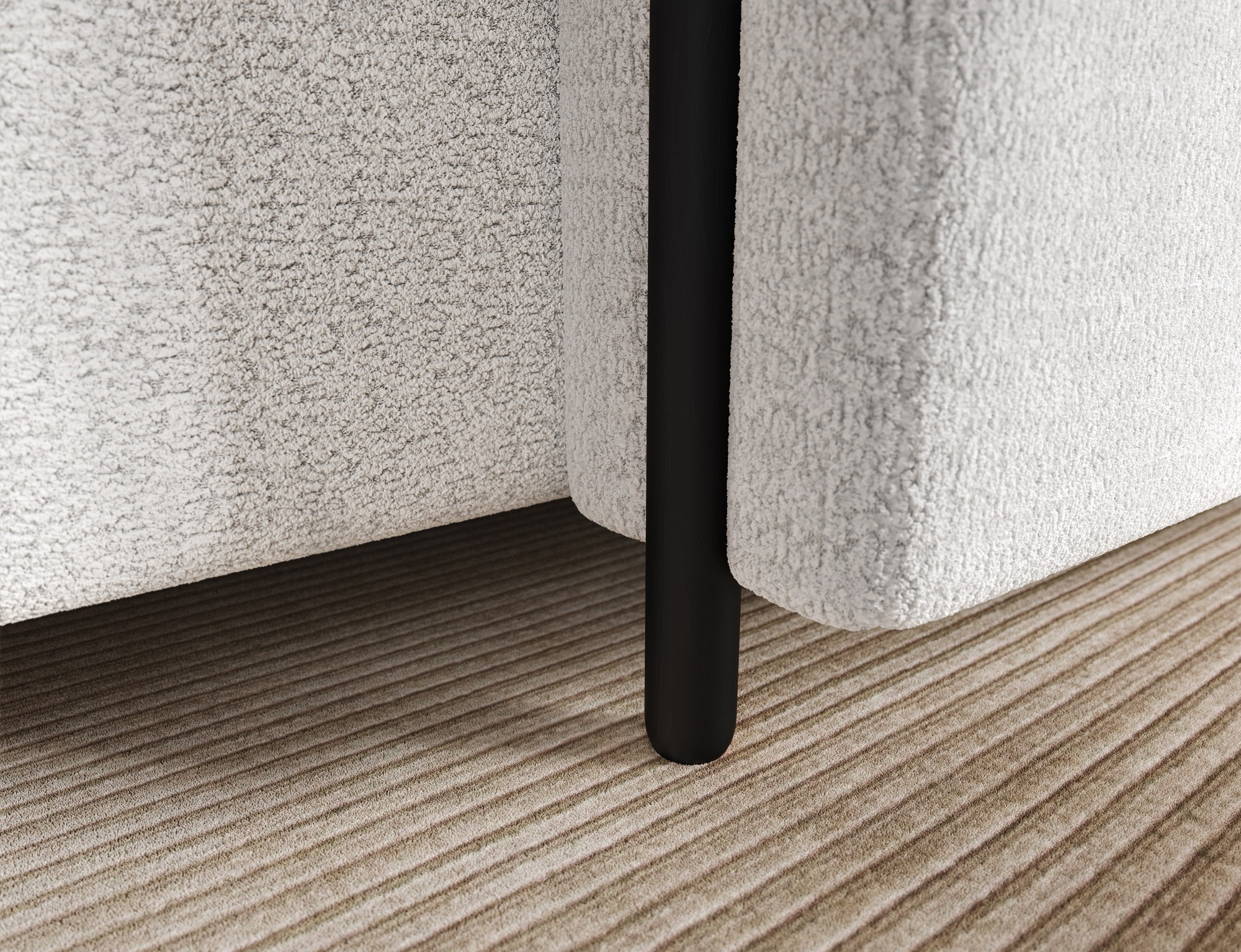 Nosnost sedací soupravy je až 270 kg, což svědčí o její robustnosti a kvalitě zpracování. Nohy jsou vyrobeny z dubového dřeva v elegantní černé barvě a mají výšku 10 cm, což dodává celé soupravě moderní vzhled a stabilitu.