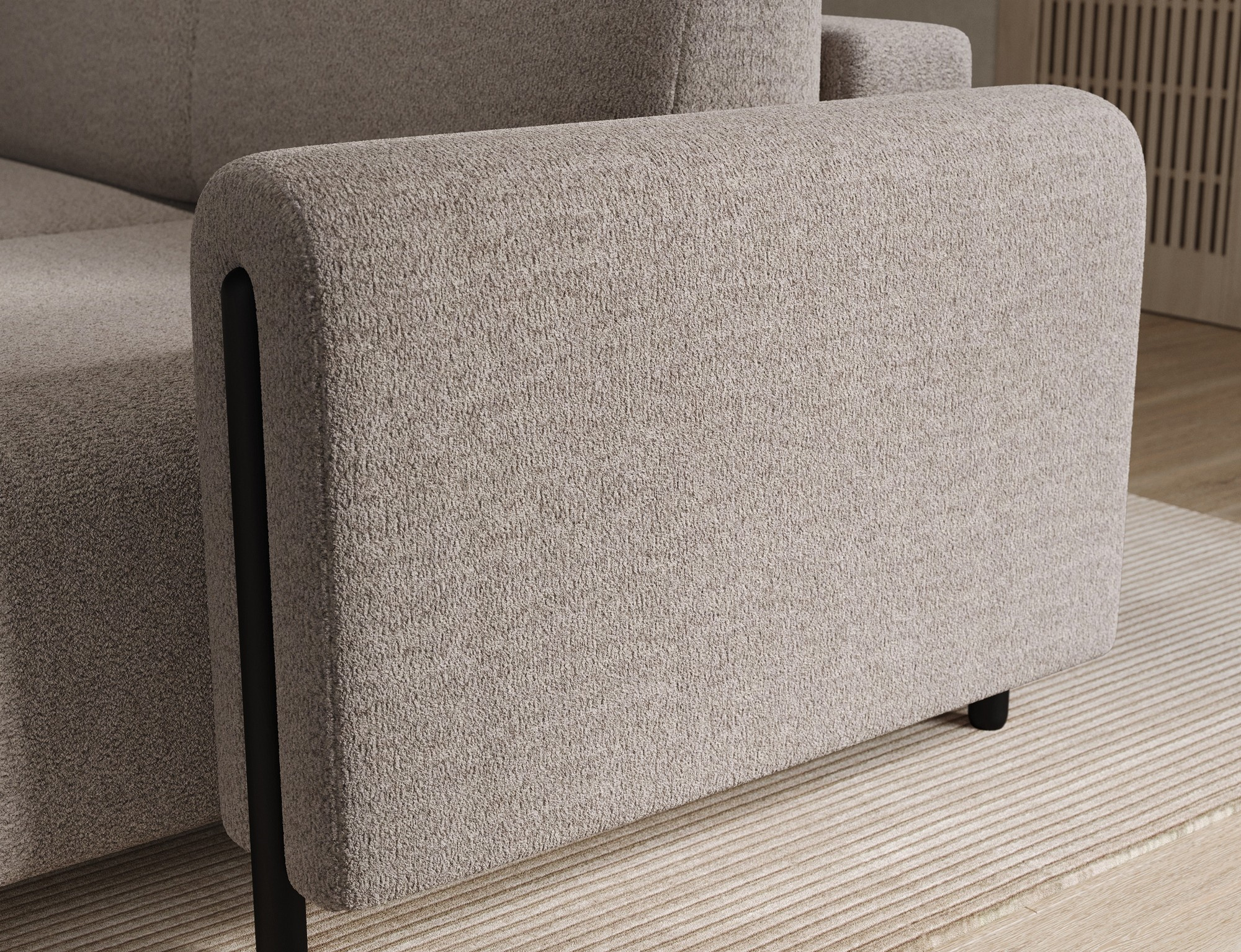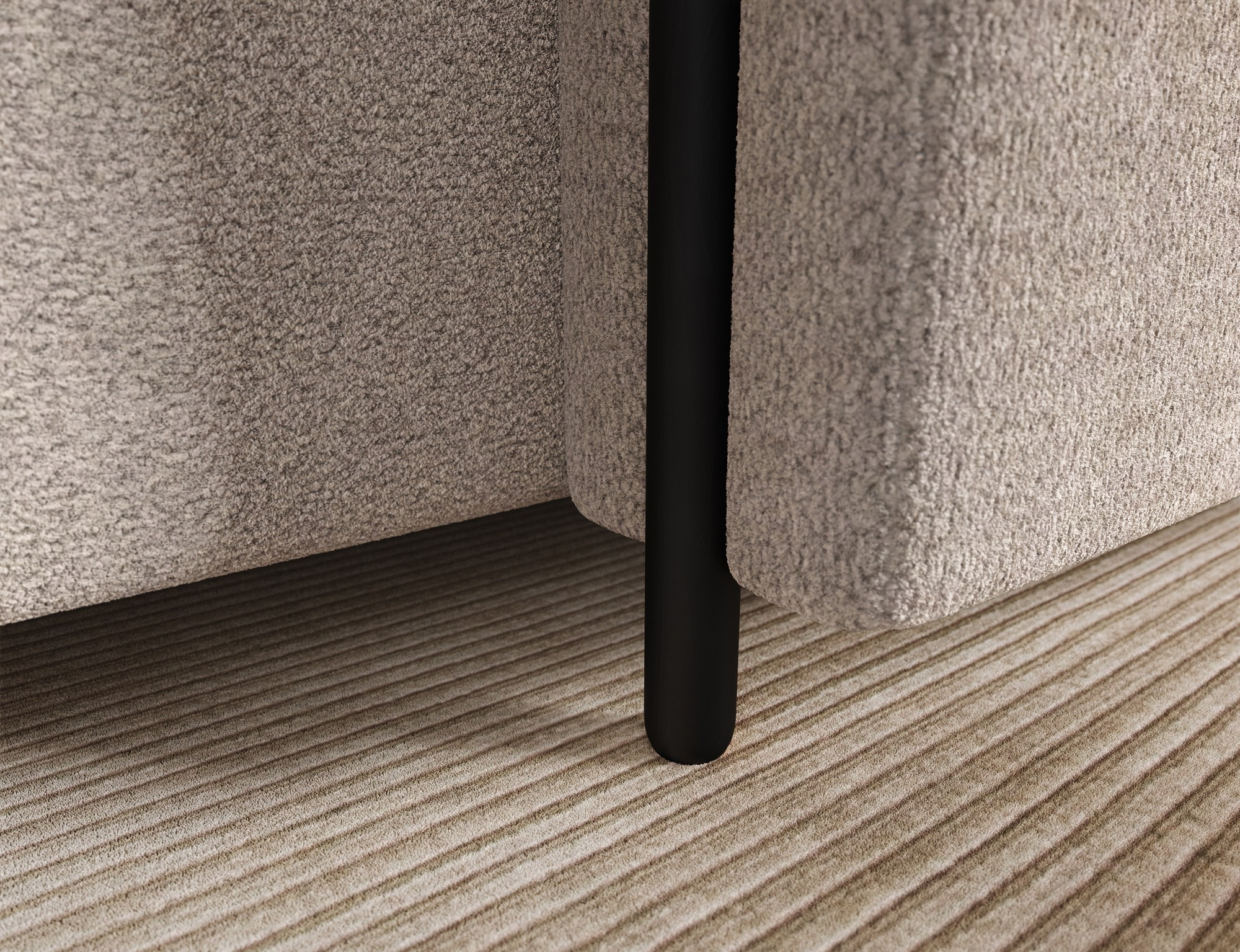 Nosnost sedací soupravy je až 270 kg, což svědčí o její robustnosti a kvalitě zpracování. Nohy jsou vyrobeny z dubového dřeva v elegantní černé barvě a mají výšku 10 cm, což dodává celé soupravě moderní vzhled a stabilitu.