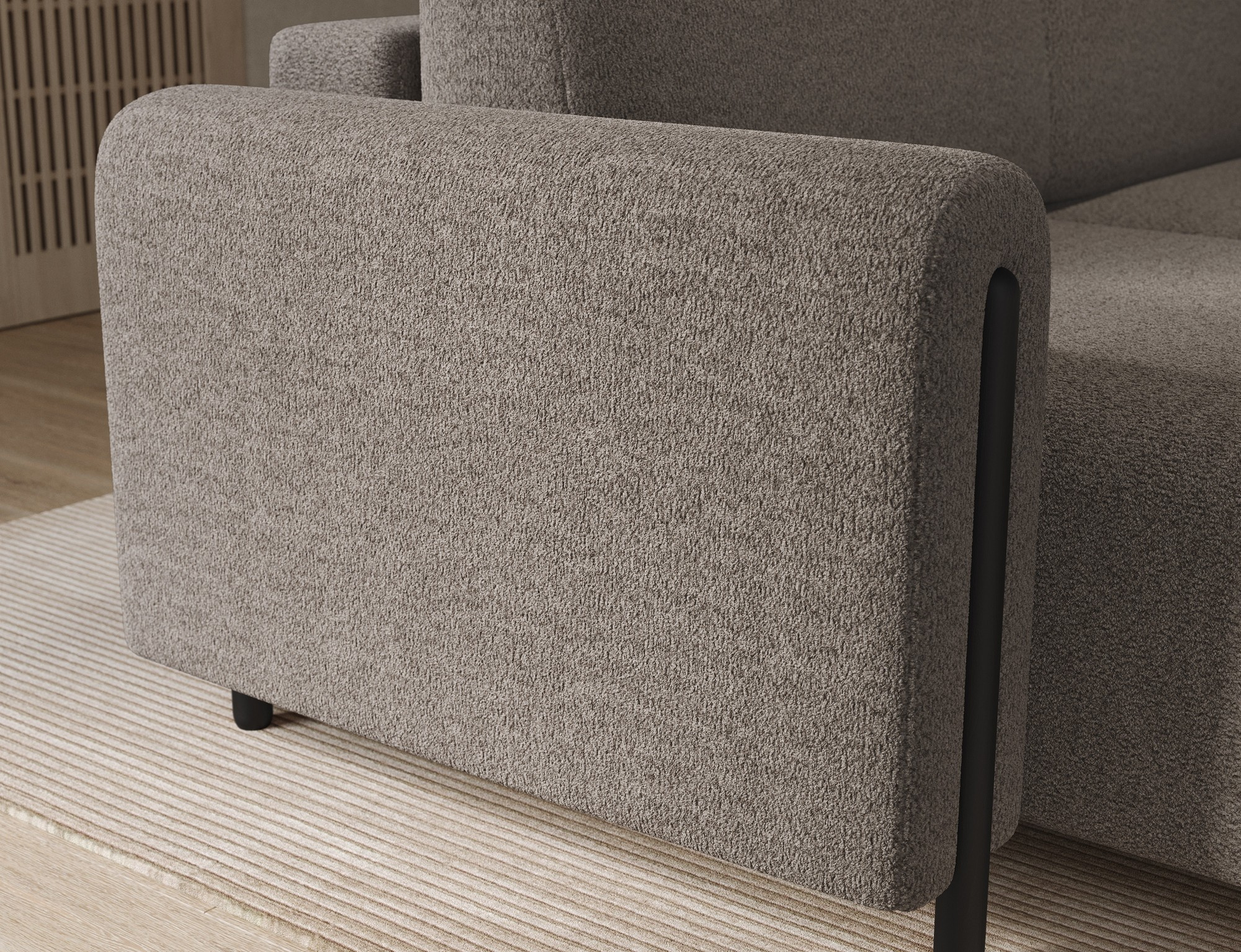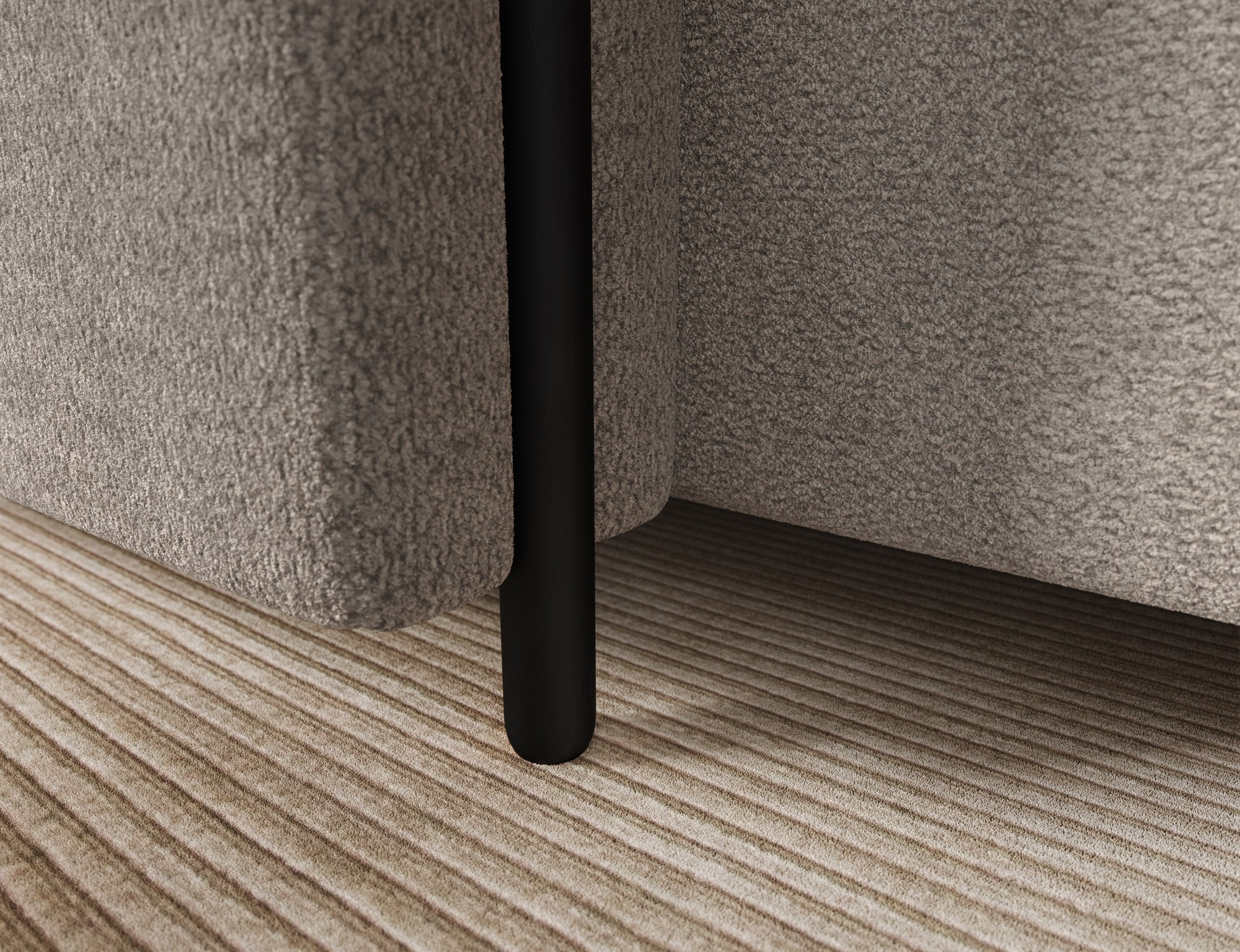 Nosnost sedací soupravy je až 270 kg, což svědčí o její robustnosti a kvalitě zpracování. Nohy jsou vyrobeny z dubového dřeva v elegantní černé barvě a mají výšku 10 cm, což dodává celé soupravě moderní vzhled a stabilitu.