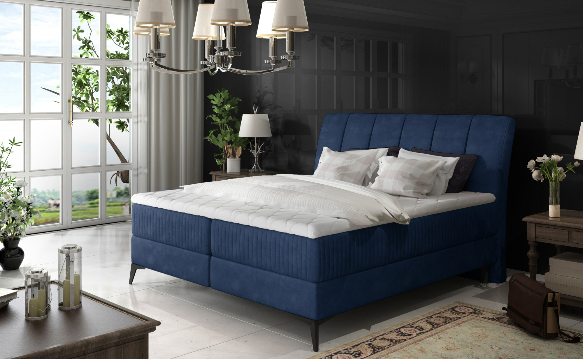 Popisujeme-li naši postel Boxspring Aderito několika slovy, můžeme říci, že je to kombinace modernosti, elegance, dobrého stylu a maximálního pohodlí s velkou funkčností. Prostorná postel s rozměry: 140/160/180 x 200 cm je ideálním místem pro spánek i odpočinek kdykoli jindy. Mezi další výhody tohoto modelu můžeme zařadit pevnou matraci a robustní čalouněný rám, doplněné o prostorné 2 úložné prostory na ložní prádlo. Vysoká úroveň pohodlí je ovlivněna výplní sedáku postele, která kombinuje bonelovou matraci s pružnou pěnou T25 a 4 cm topperem z pěny T30. Další odlišení je také ovlivněno původním designem postele ve formě: vkusného čalounění s jemným dotykem, šikmého čela a černých kovových nohou o výšce 14 cm. Aderito je ztělesněním řemeslného designu, elegance a třídy - stojí za to mít takovou postel ve své ložnici.