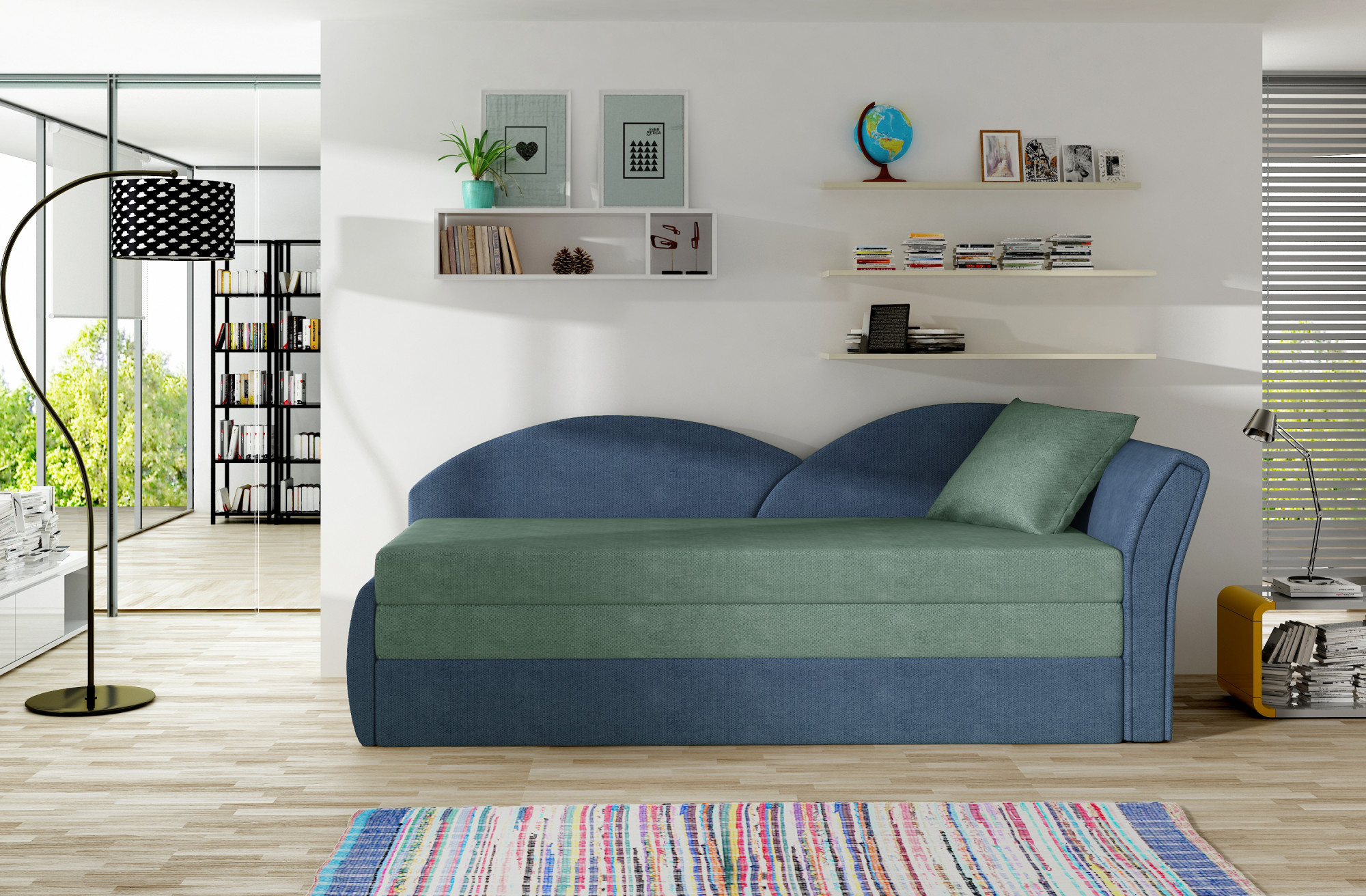 Aga je maximálně pohodlná a funkční pohovka s rozměry 218 x 80 x 77 cm, která je ideální jako kus nábytku do dětského pokoje. Původní tvar opěradla i sedáku je k dispozici jak v jednobarevném provedení, tak s vzorovaným povrchem. Takové možnosti materiálů a barev umožní zařídit dětský pokoj podle individuálních vkusů. Pohovka poskytuje dostatek prostoru nejen pro denní odpočinek, ale také pro noční odpočinek. Funkce skládání nábytku vám umožňuje přizpůsobit pohovku vašim aktuálním potřebám. Mluvíme o posuvném dně, které jej přemění na postel o rozměrech 180 x 150 cm. Pro maximální pohodlí je Aga vybavena sedadlem z pěny T25, která poskytuje flexibilitu, měkkost, komfort a bezpečnost tím, že správně podpírá tělo. Aga bude dokonale útulným kusem nábytku a zároveň originální dekorací každého dětského pokoje.