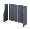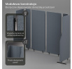 Maximální stabilita a bezpečnost: Akustická stěna SADIE je podepřena pevnými kovovými nožkami, které zajišťují stabilitu i v rušných prostorech. Konstrukce panelů je lehká, ale odolná proti náhodnému převrácení a posunutí.