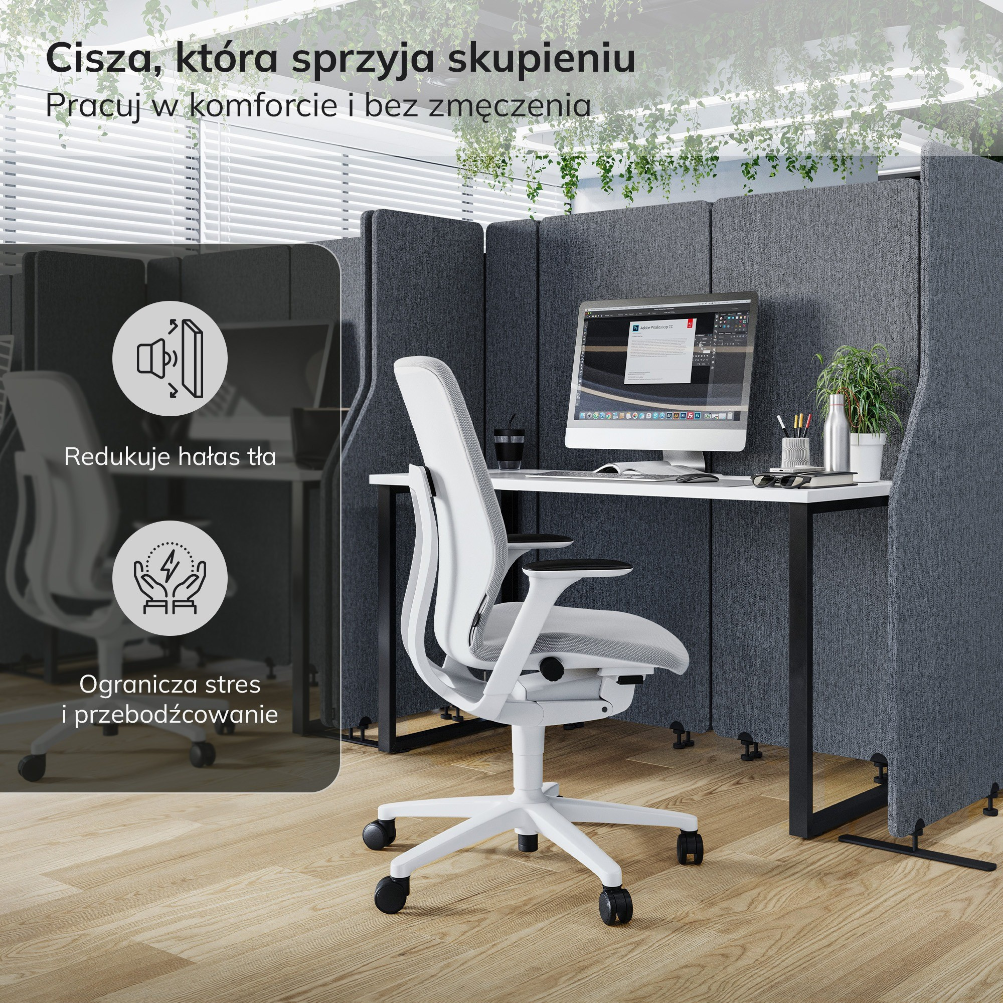 Představte si kancelář, kde se můžete plně soustředit, nerušeně pracovat a efektivně komunikovat. Místo, kde se myšlenky volně rozvíjejí a kreativita kvete. S akustickou stěnou SADIE se tato vize stává realitou. Zapomeňte na rušivé zvuky, rozptýlení a stres. Vytvořte si vlastní zónu klidu a soukromí, ať už pracujete v open space, coworkingovém centru, škole nebo veřejné instituci.
