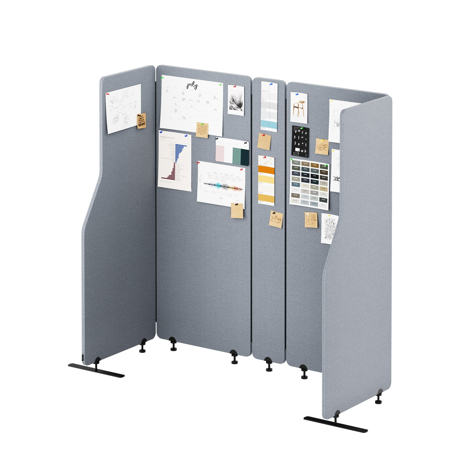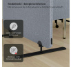 Stěna je vyrobena z recyklovaného PET materiálu, který má vynikající zvukově absorpční vlastnosti. Potahová látka s certifikátem OEKO-TEX je odolná proti oděru a snadno se čistí. Kovové nožky zajišťují maximální stabilitu a odolnost.