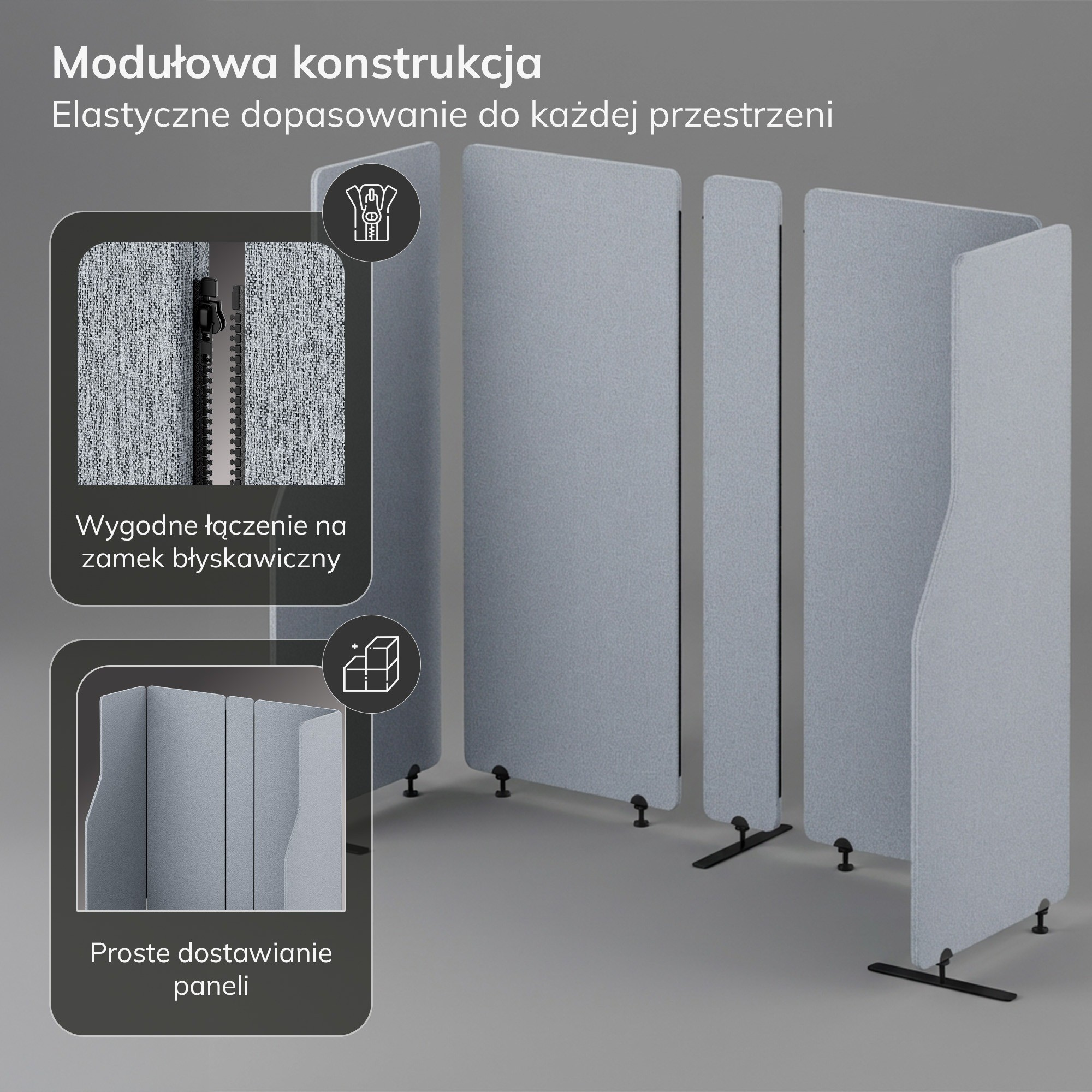- Modulární konstrukce: Snadné a rychlé propojení panelů pomocí zipu umožňuje flexibilní uspořádání a přizpůsobení prostoru vašim potřebám.
