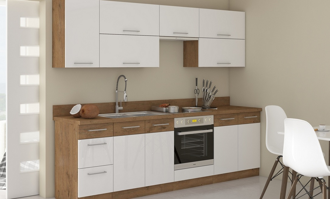 - Kuchyně VEGAS - Dub Lancelot / Bílý Lesk
