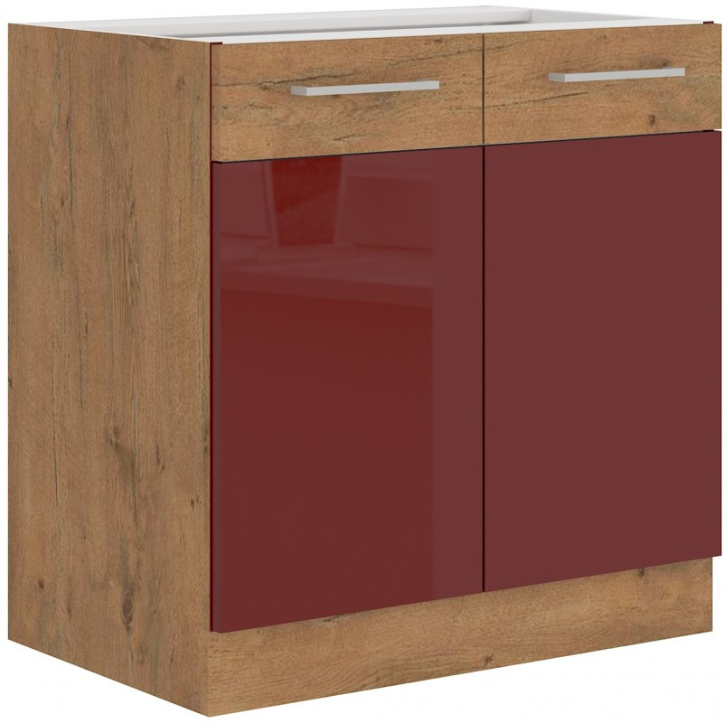 Kuchyňská skříňka Vega 80D2F dub lancelot/bordo lesk