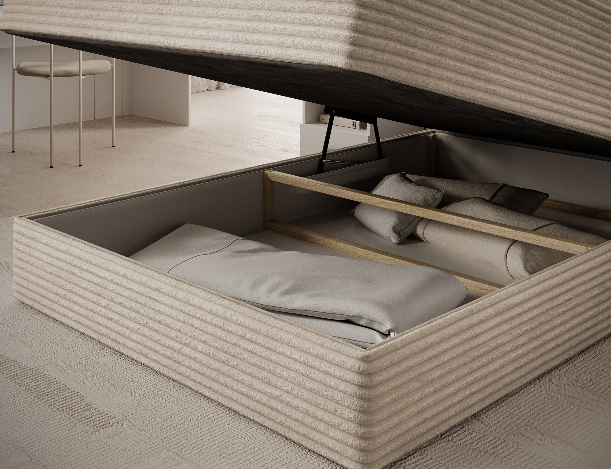 Čalounění dodává posteli ALAMITO elegantní a moderní vzhled, který se snadno hodí do jakéhokoli interiéru. Opěra je vyrobena z polyuretanové pěny T2130, což zajišťuje pohodlné opření při čtení nebo sledování televize v posteli.