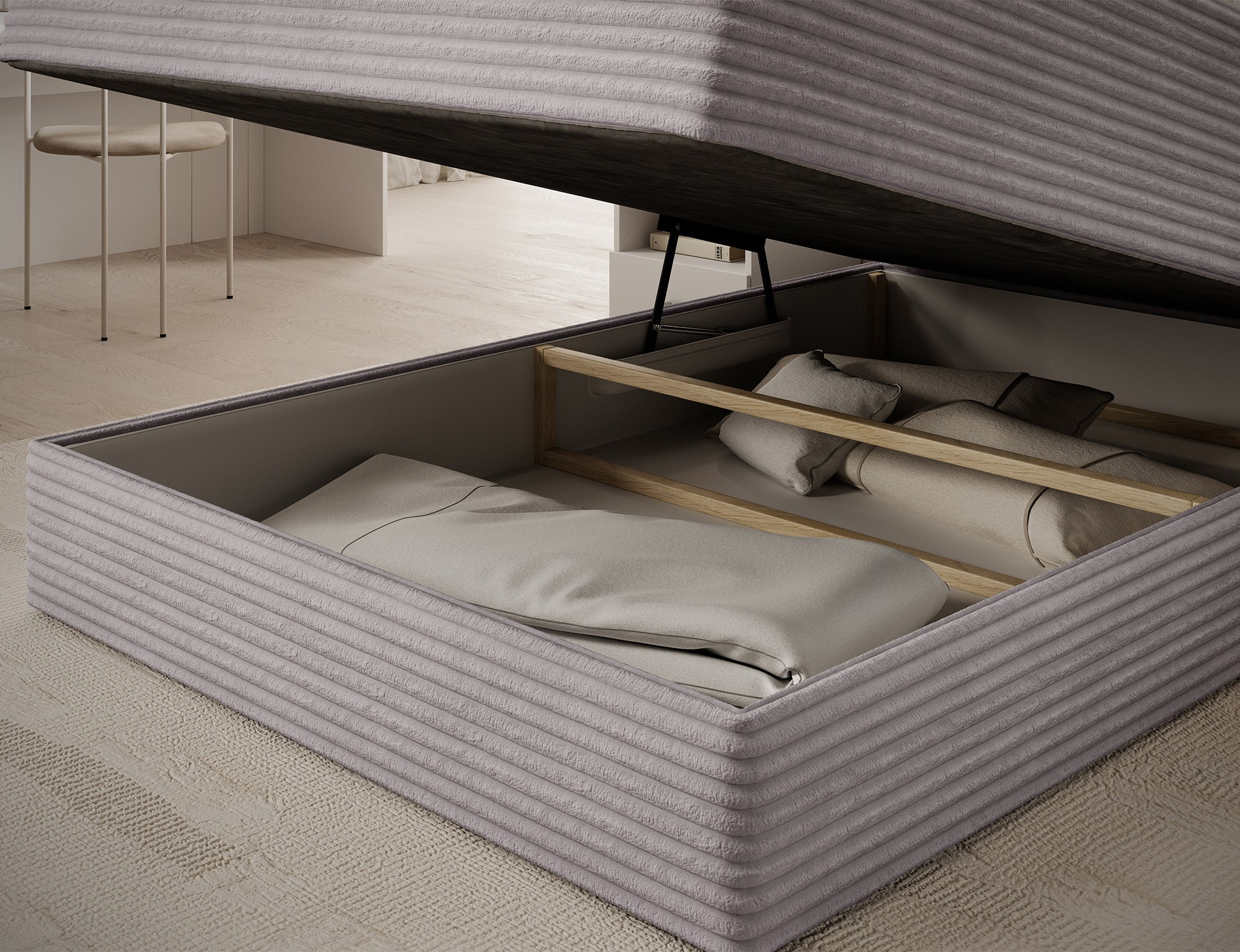 Čalounění dodává posteli ALAMITO elegantní a moderní vzhled, který se snadno hodí do jakéhokoli interiéru. Opěra je vyrobena z polyuretanové pěny T2130, což zajišťuje pohodlné opření při čtení nebo sledování televize v posteli.