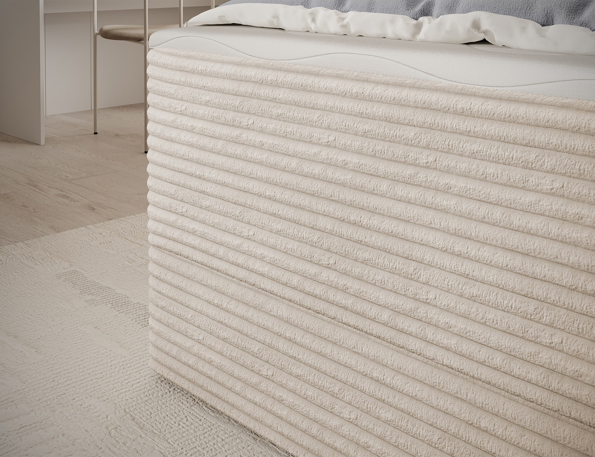 Čalounění dodává posteli ALAMITO elegantní a moderní vzhled, který se snadno hodí do jakéhokoli interiéru. Opěra je vyrobena z polyuretanové pěny T2130, což zajišťuje pohodlné opření při čtení nebo sledování televize v posteli.