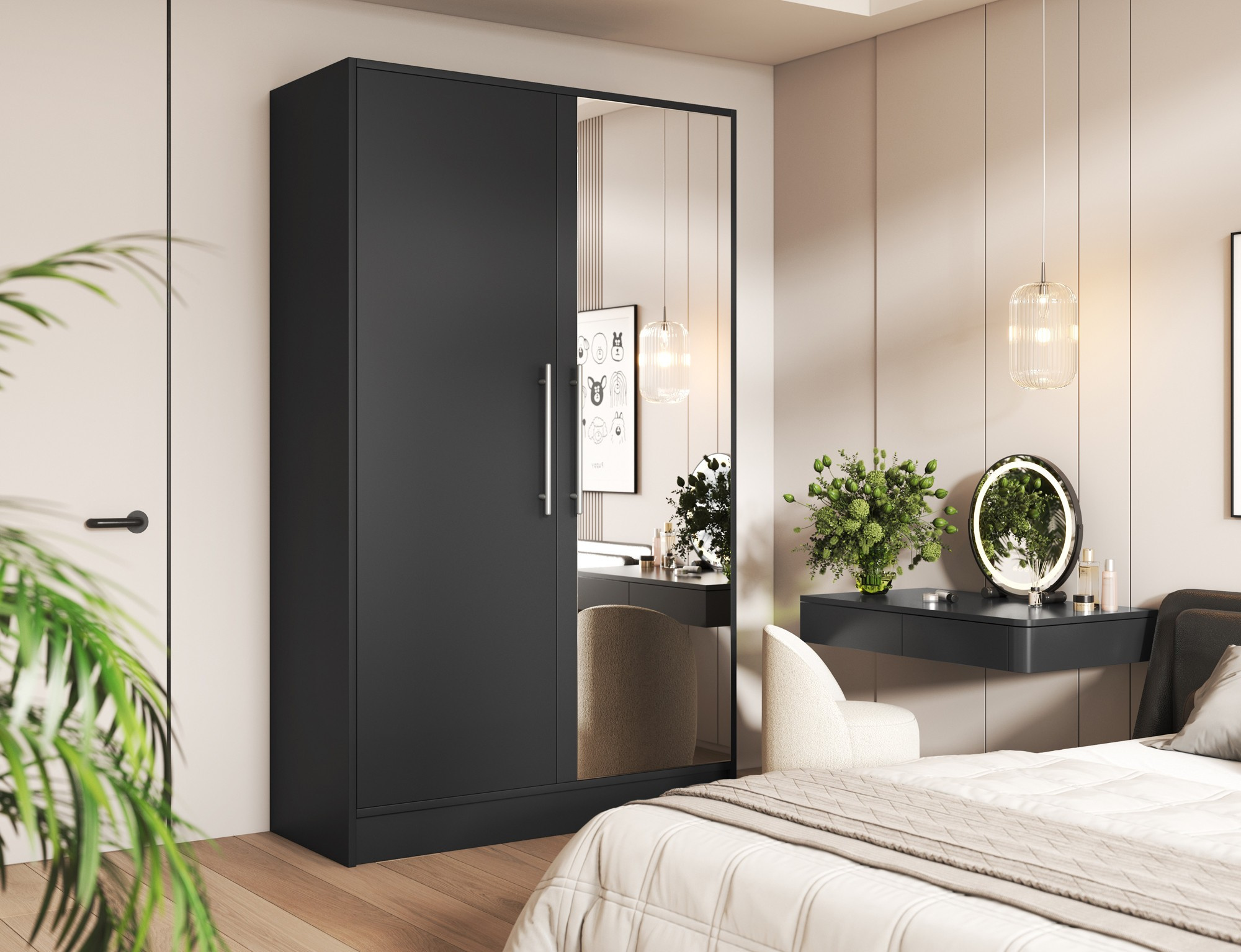 Šatní skříň Alarica je prostorná a robustní skříň na oblečení navržená pro pohodlné uložení oblečení a doplňků v domácnostech různých velikostí. S rozměry 120 cm na šířku, 200 cm na výšku a 60 cm do hloubky nabízí velkorysý využitelný prostor, přičemž si zachovává proporce, které umožňují snadné umístění ve většině interiérových uspořádání. Tělo i přední část jsou vyrobeny z odolné laminované desky, což zajišťuje odolnost vůči každodennímu používání, snadné čištění a atraktivní vzhled po mnoho let. Uvnitř skříně se nacházejí 4 praktické police o rozměrech 57 × 37 × 51 cm, každá s maximální nosností až 8 kg—ideální pro složené oblečení, domácí textilie nebo organizéry—zatímco 2 závěsné tyče doplňují sestavu, což vám umožní pohodlně pověsit košile, šaty, kabáty a další oděvy bez pomačkání. Další výhodou je zrcadlo na přední straně, které opticky zvětšuje místnost a usnadňuje každodenní přípravy. Šatní skříň Alarica váží 120 kg, což zdůrazňuje stabilitu její konstrukce, a je dodávána ve 3 baleních (66 × 206 × 7 cm – 45 kg, 66 × 125 × 7 cm – 45 kg, 62 × 190 × 4 cm – 28 kg), což usnadňuje přepravu a přenášení dovnitř—vynikající volba pro každého, kdo hledá funkční, moderní a odolnou šatní skříň s policemi, závěsnými tyčemi a zrcadlem pro úhledně organizované ukládání oblečení.