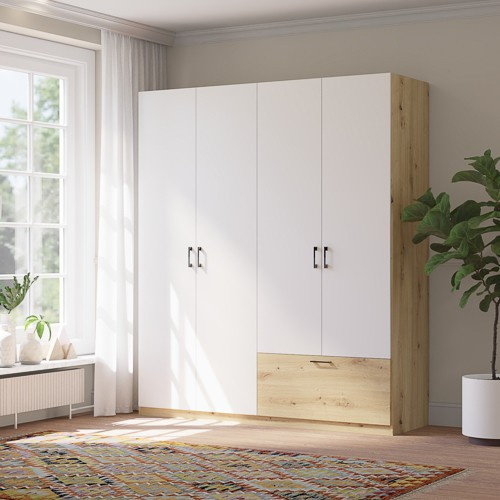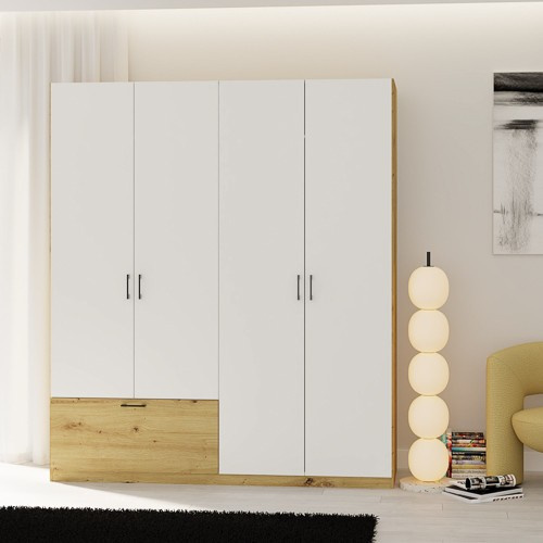Šatní skříň ALTA 4D1S, Dub Artisan/Bílá