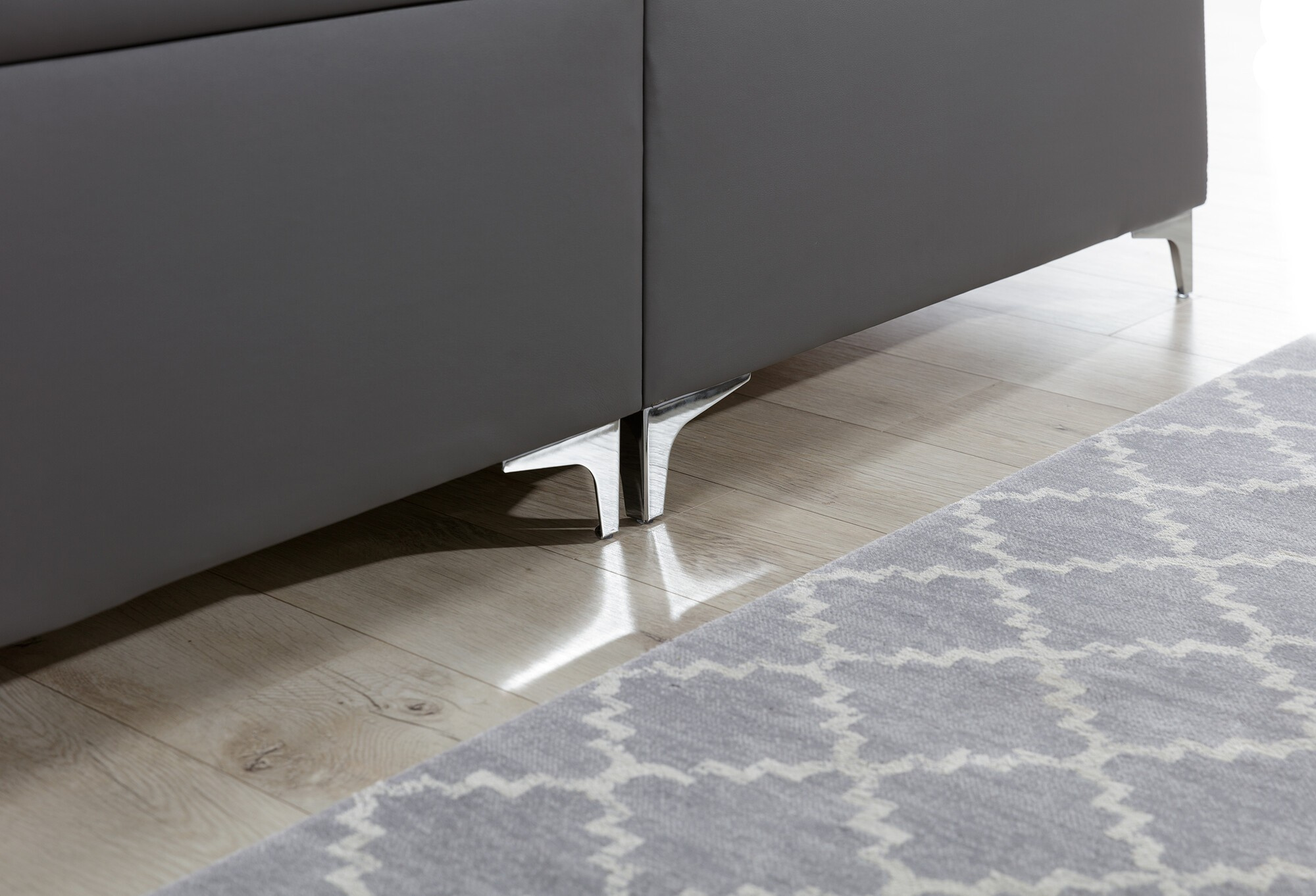 Amadeo je mimořádně pohodlná, robustní a originálně navržená boxspringová postel, která zaujme svým neobvyklým tvarem a dalšími ozdobami. Je k dispozici ve třech variantách 140/160/180 x 200 cm, takže jej můžete velmi snadno přizpůsobit metrické velikosti vašeho bytu. Mezi jeho vlastnosti patří: vysoká matrace, stylové čelo postele vybavené dodatečnou pěnou T21, prostorný úložný prostor na ložní prádlo, kovové chromované nohy a elegantní čalounění odolné proti oděru a nečistotám, které je k dispozici v mnoha barvách z kolekce Eltap. Nejoriginálnějším dekorativním prvkem našeho nábytku je možnost vybavit jej LED osvětlením. Matrace je vyrobena z bonelu a má dvě další vrstvy pěny T25 umístěné na horní a spodní straně matrace. Výplň postele byla také zesílena 4 cm silnou pěnovou vrstvou T21. Toto řešení to činí co nejpohodlnějším. Stojí za to mít takový funkční kus nábytku ve vašem bytě.