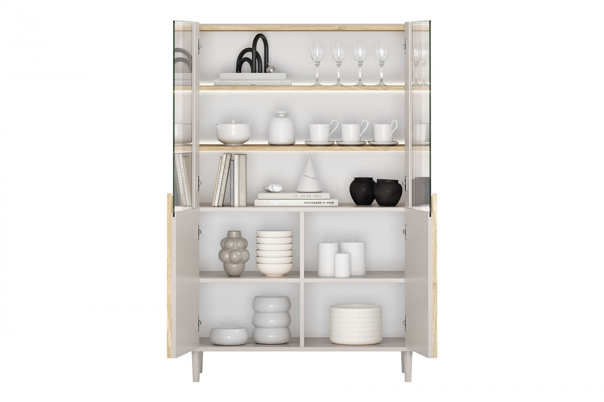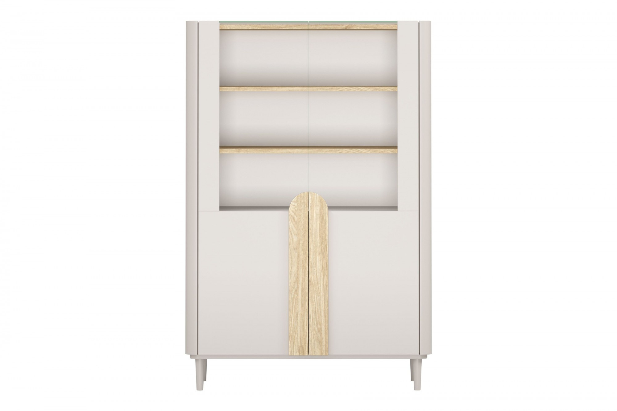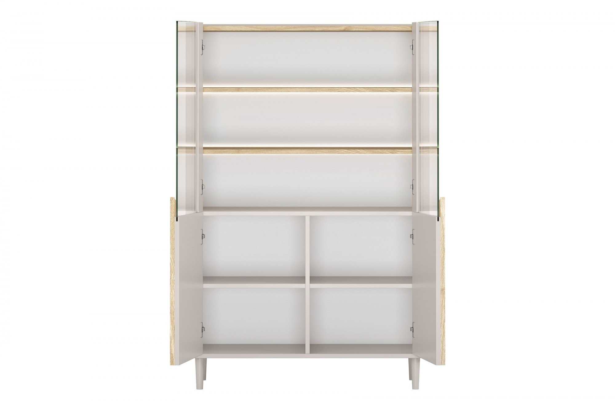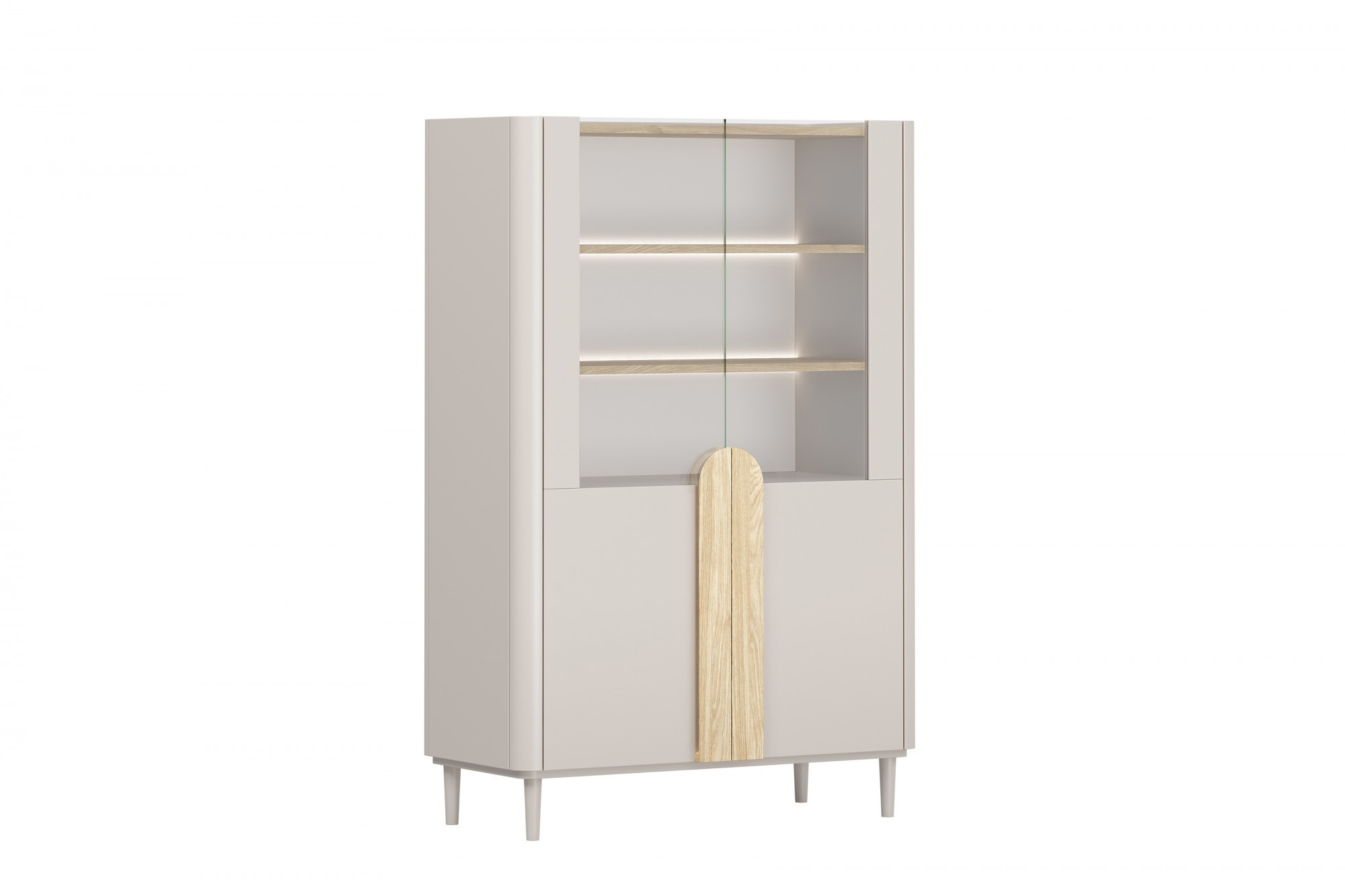 AMILIO VITRÍNA 100 2D - kašmír / olejovaný dub / úchyty světlý dub / nohy kašmír