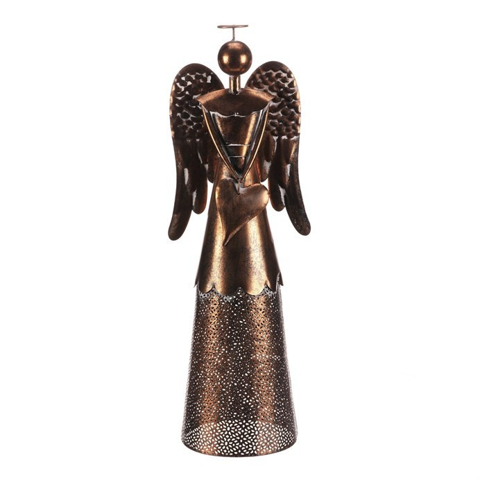 Anděl kovový - 61 cm, se srdcem v rukou, měděný