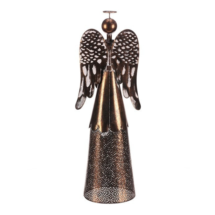 Dekorativní kovový anděl značky Autronic v měděném provedení o výšce 61 cm. Anděl drží srdce v rukou, což dodává výrobku symbolický význam a estetickou hodnotu. Díky kovovému materiálu je odolný a vhodný jako ozdoba interiéru i exteriéru, kde přinese příjemnou atmosféru a stylový doplněk.