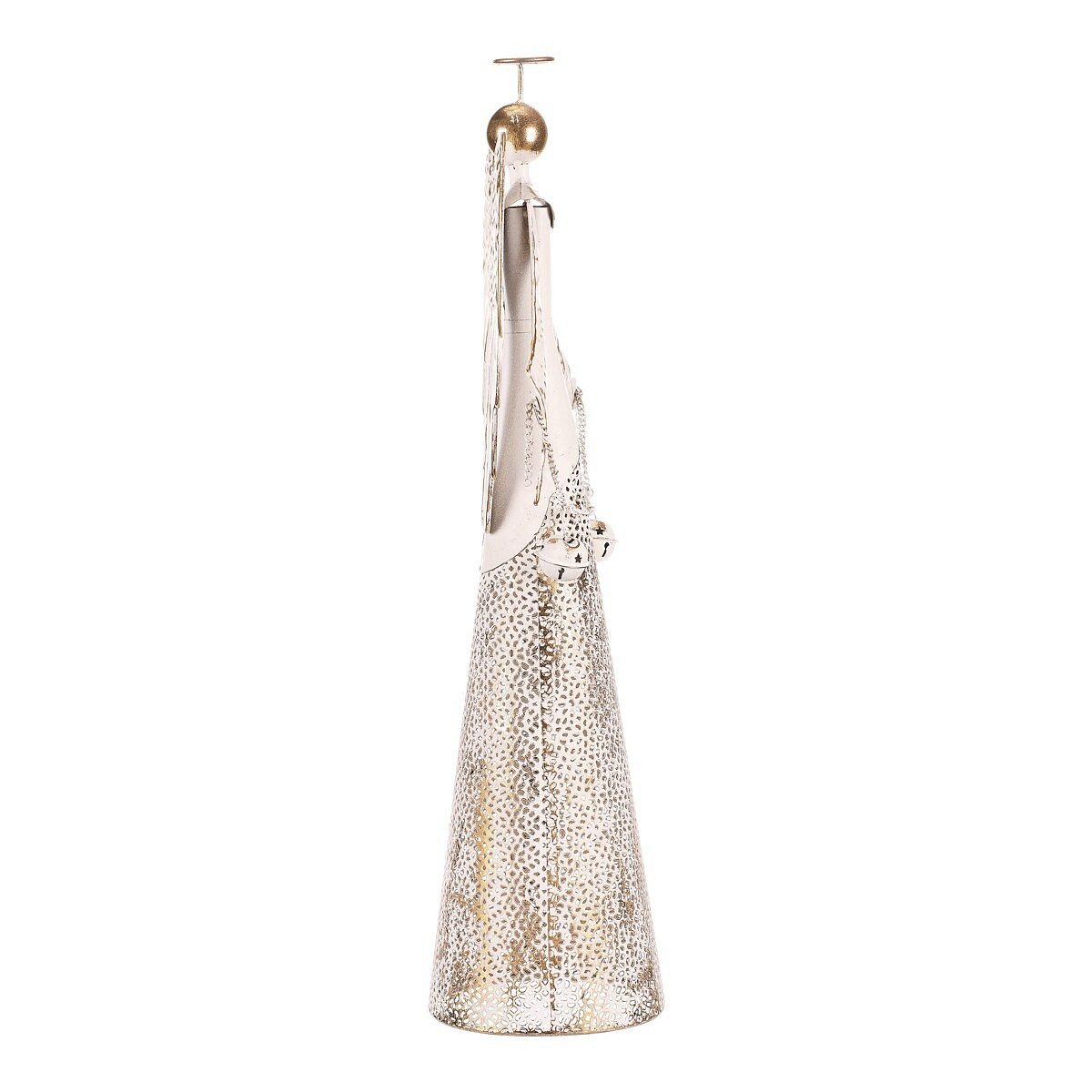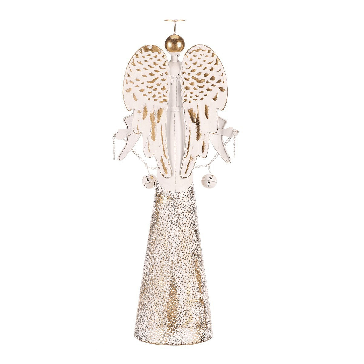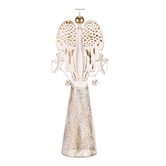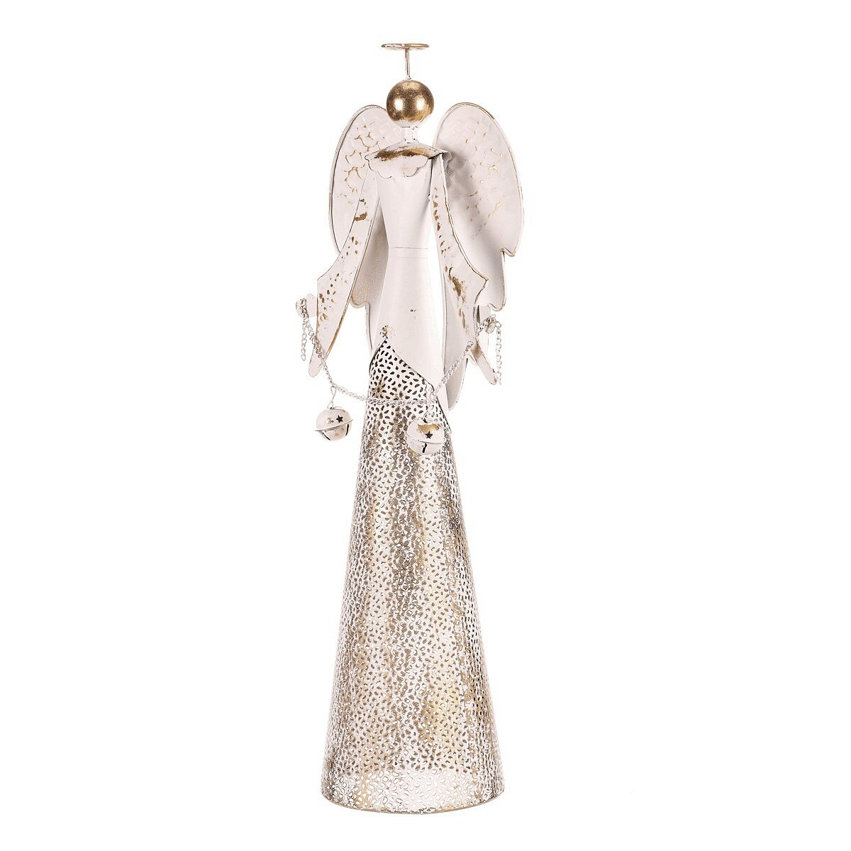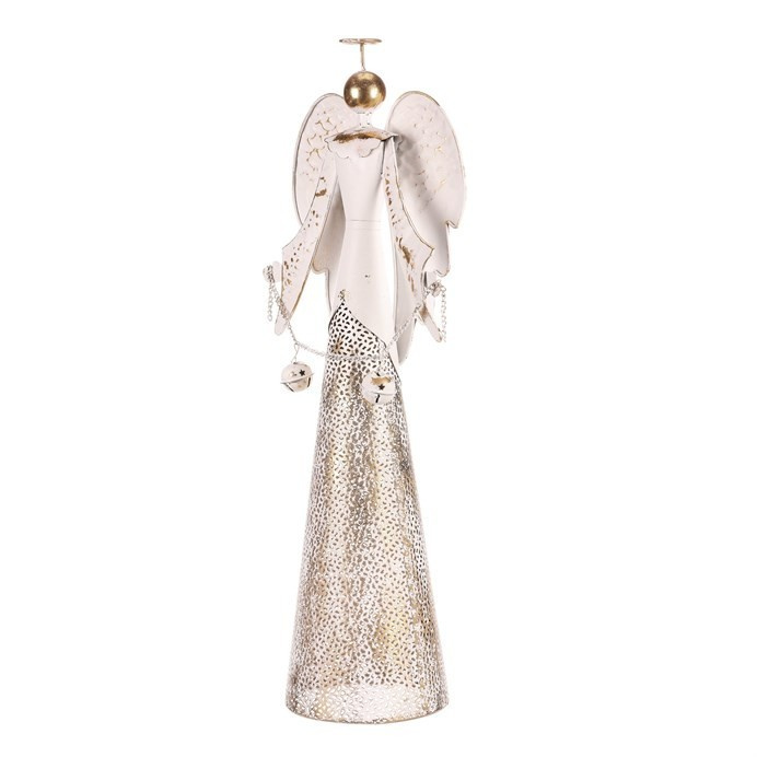 Anděl kovový s rolničkami - na postavení, vel. L, bílý