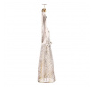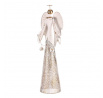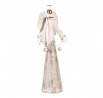 Kovový anděl na postavení v bílém provedení se stane jednoznačně ústředním bodem vaší vánoční výzdoby. Zdobí jej taktéž bílé rolničky a hlavu se svatozáří má ve zlatém odstínu. Umístěte jej na stůl, komodu, poličku na okenní parapet nebo jiné vhodné místo, kde na něj bude dobře vidět. S elegantním vzhledem a duchovním poselstvím bude tento anděl rozjasňovat váš domov a přinášet do něj radost a klid během celého vánočního období, i po něm.