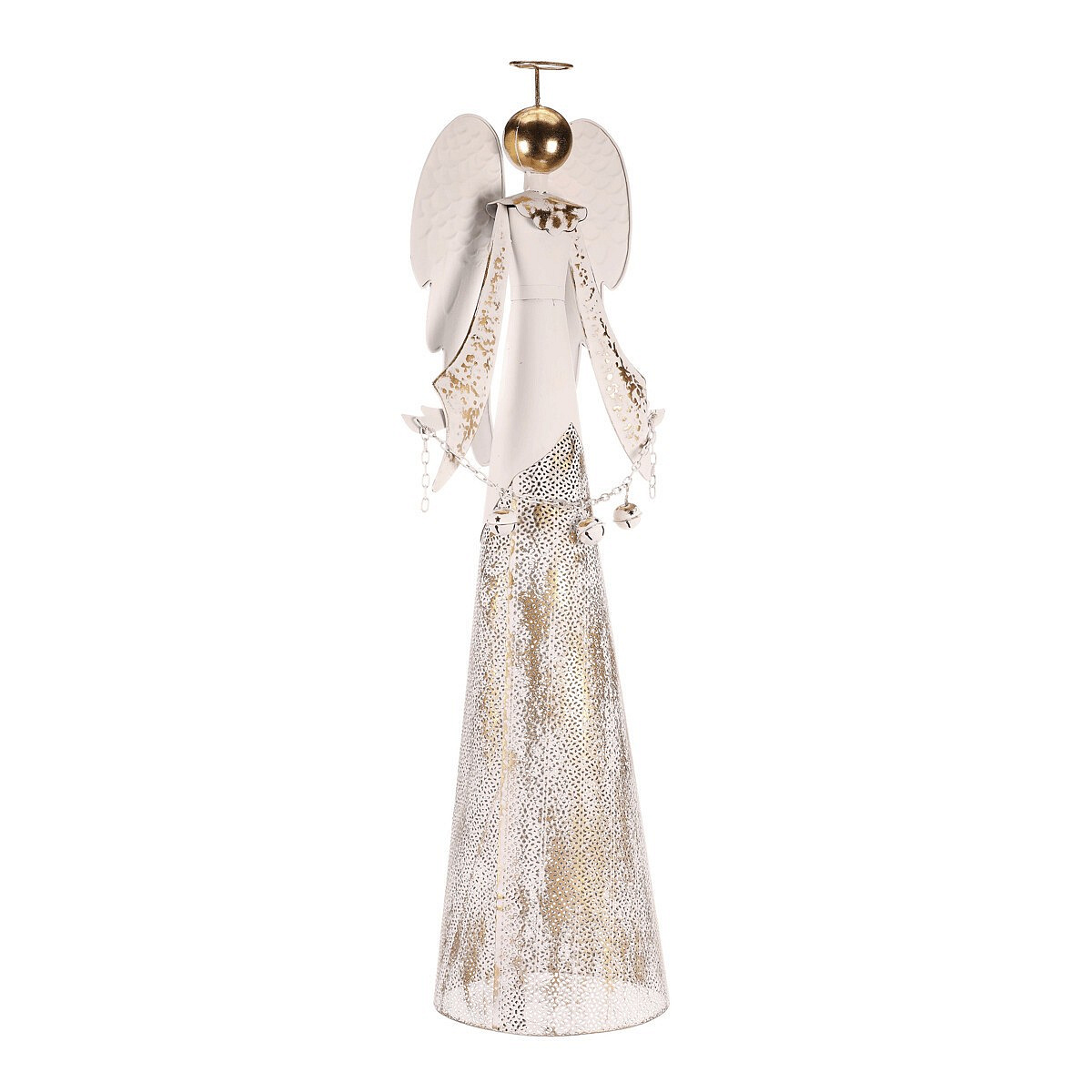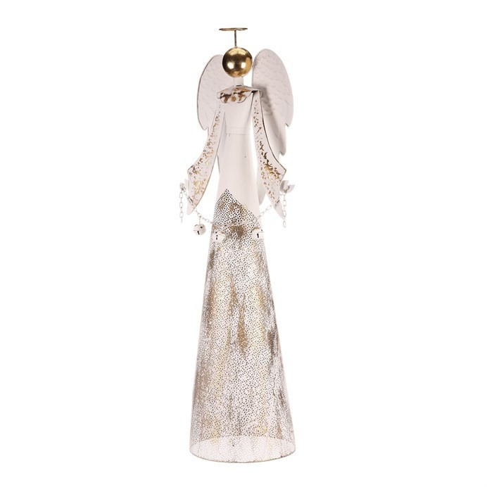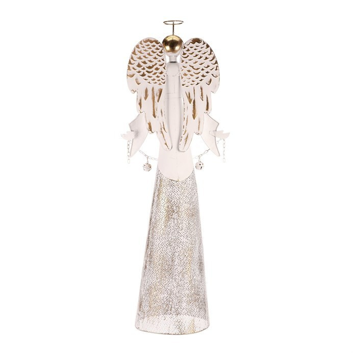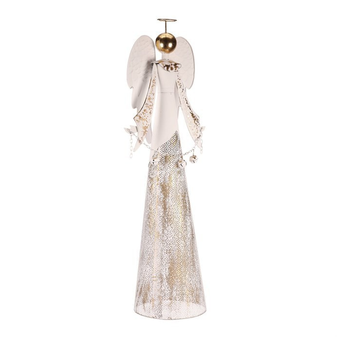 Anděl kovový s rolničkami - na postavení, vel. XL, bílý