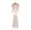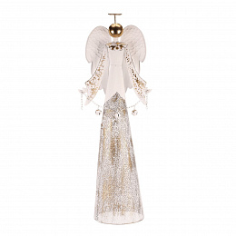 Extra velký kovový anděl na postavení v bílém provedení se stane jednoznačně ústředním bodem vaší vánoční výzdoby. Zdobí jej taktéž bílé rolničky a hlavu se svatozáří má ve zlatém odstínu. Umístěte jej na stůl, komodu, poličku na okenní parapet nebo jiné vhodné místo, kde na něj bude dobře vidět. S elegantním vzhledem a duchovním poselstvím bude tento anděl rozjasňovat váš domov a přinášet do něj radost a klid během celého vánočního období, i po něm.