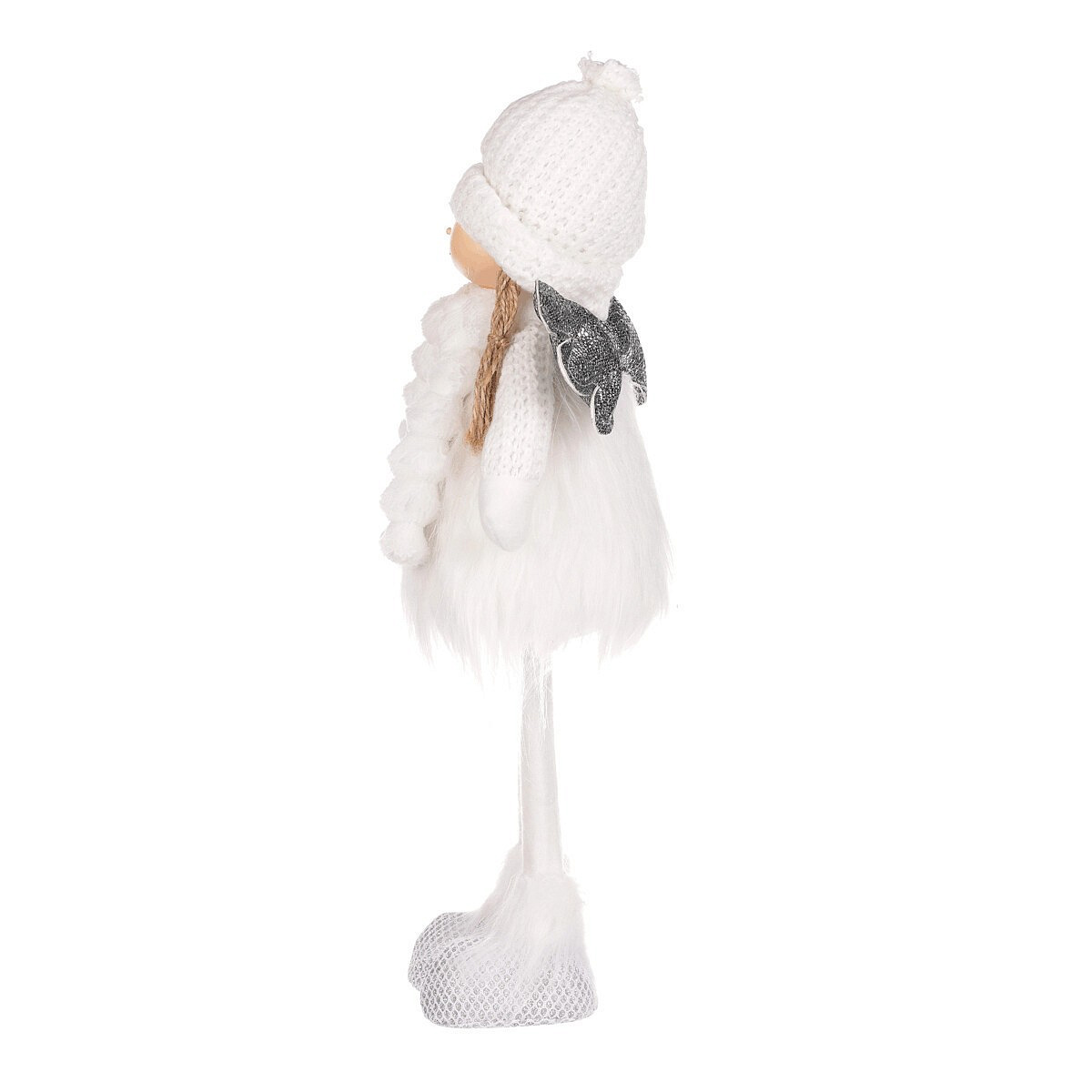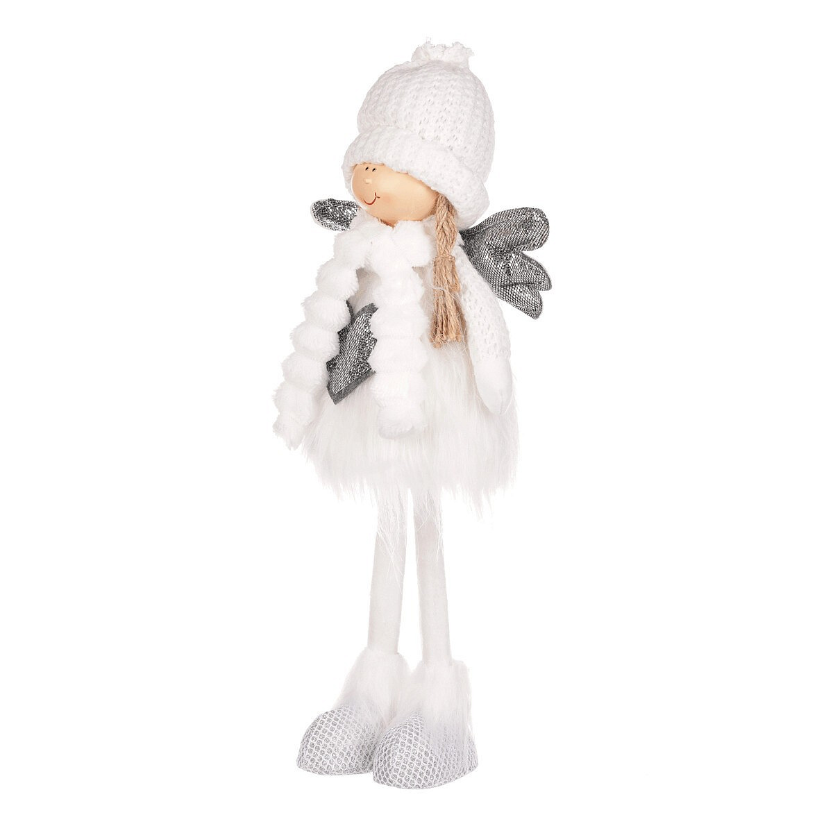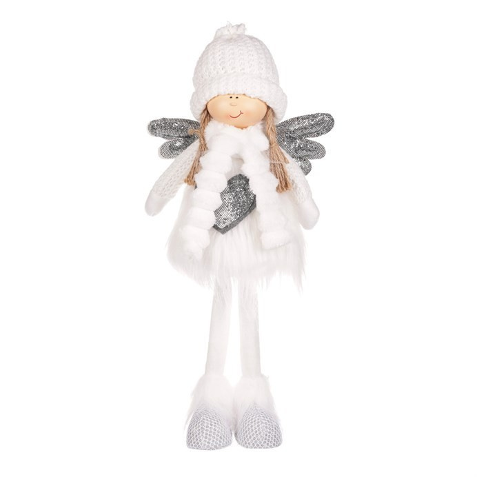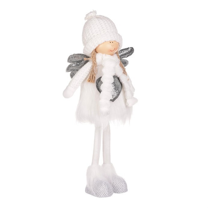 Vytvořte si domov plný vánočního kouzla a jemnosti s naším látkovým andělem v teplém bílém oblečení se srdíčkem. Je stylizován do podoby roztomilé dívenky s jemným úsměvem, přinášející do vašeho prostoru nejen sváteční náladu, ale i pohodu a hřejivé štěstí. Je to ideální dekorace, která dokáže ozdobit a zútulnit váš domov i za chladných zimních dnů. Teplá čepička a rukavičky ji připravují na zimu a zároveň jí dodávají přívětivý a hřejivý vzhled. Jemná andělská křídla dodávají dekoraci lehkost a vzdušnost. Stojící anděl se srdcem je poslem lásky, něžnosti a radosti z chvil trávených společně s našimi blízkými. Umístěte ho na viditelné místo a nechte jej působit jako zdroj radosti a dobré nálady, připomínající krásu vánočního času i prostého štěstí v chladných dnech.