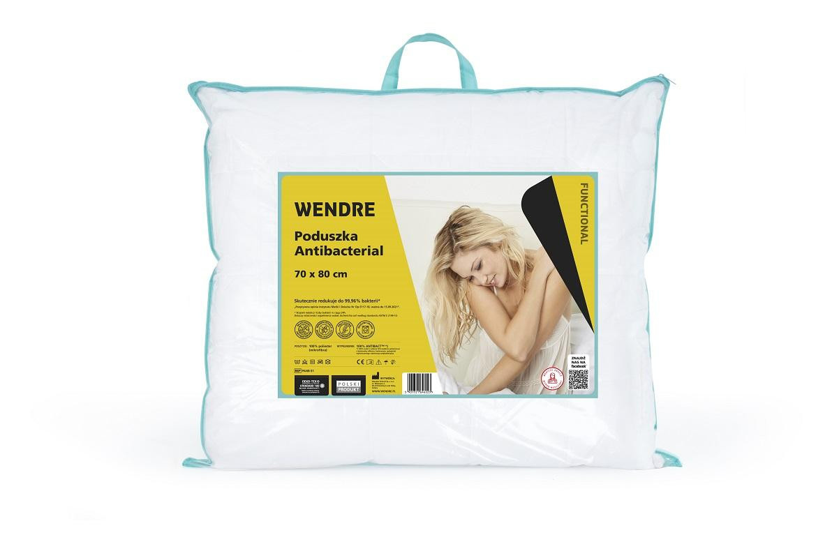 Antibakteriální polštář Wendre 70x80 Několikrát týdně cvičíte a rozumně se stravujete, což znamená, že pečujete o své tělo. To však není vše, co můžete udělat pro své zdraví! V rámci svého zdravého životního stylu pečujte také o svůj spánek, a to s pomocí antibakteriálního polštáře. Zbavte se nežádoucích mikrobů z lůžkovin. ANTIBACT TM je speciálně patentované vlákno s antibakteriálním účinkem. Jeho účinnost potvrdil Hohensteinův institut. bylo také prokázáno, že antibakteriální přikrývky a polštáře zabraňují usazování roztočů a jejich alergenů. Antibakteriální polštáře jsou navíc jednoduše pohodlné - nadýchaná výplň a hladké mikrovlákno vám poskytnou výjimečné pohodlí při spánku. Věříme, že naše produkty vám pomohou odpočinout si a zotavit se, abyste byli připraveni na další výzvu! Polštář o rozměrech 50 x 60 cm s výplní Antibact (kuličky z vláken HCS s antibakteriální úpravou), polyesterový potah. Zdravotnický prostředek vhodný pro alergiky.