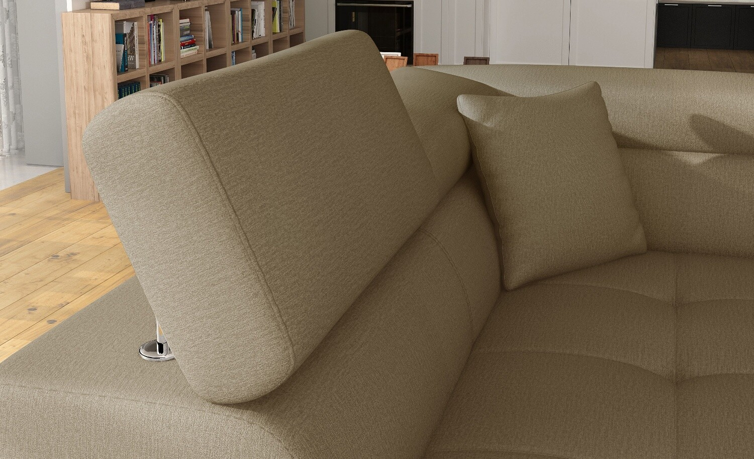 Anton se pyšní vysokými, nastavitelnými opěrkami hlavy, které přispívají k maximálnímu komfortu. Široké, 31 centimetrů široké opěrky rukou a 9 cm vysoké kovové nohy dodávají pohovce moderní a sofistikovaný vzhled. Tyto detaily nejen zvyšují estetickou hodnotu, ale také zajišťují stabilitu a dlouhou životnost nábytku.