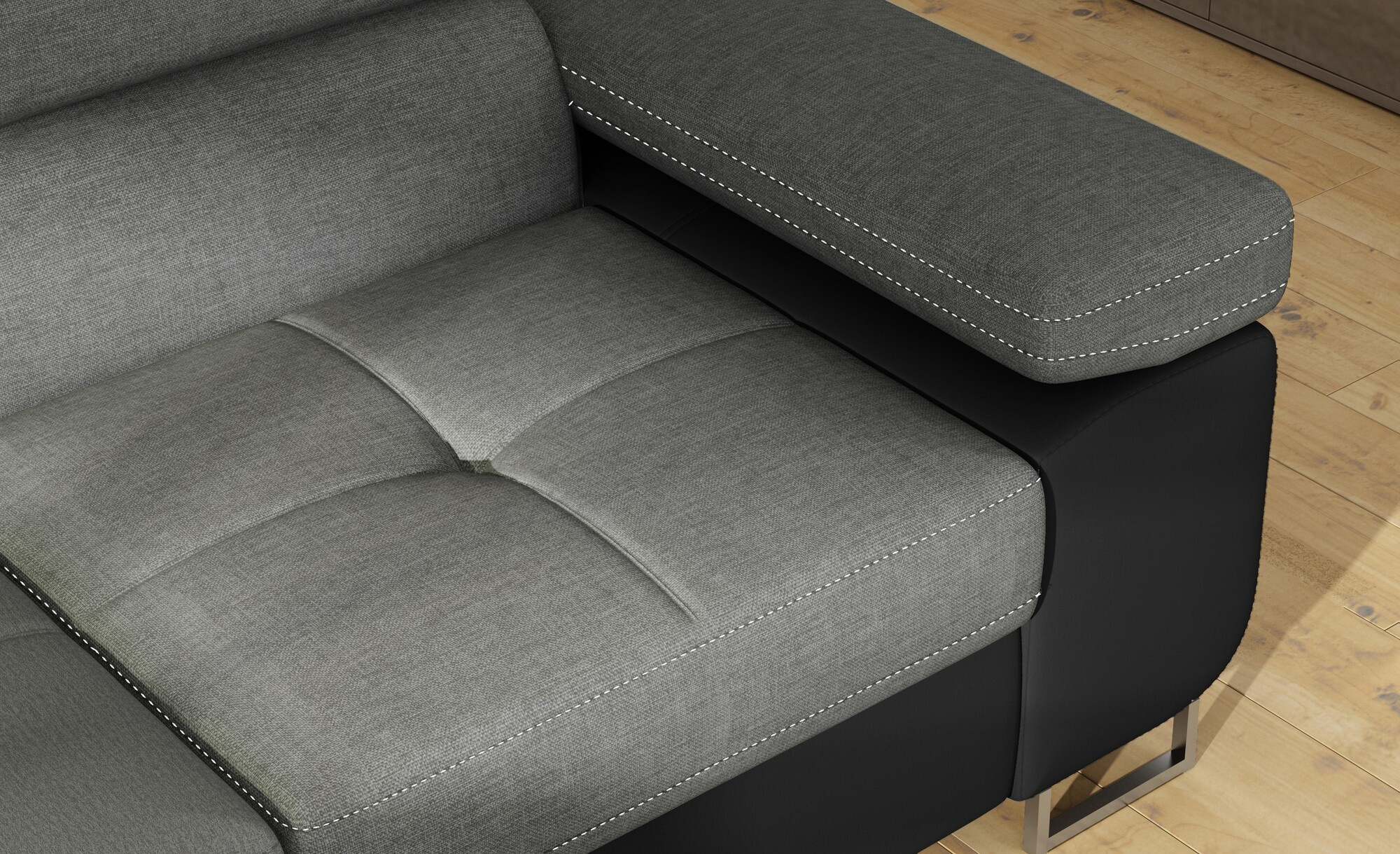 Anton se pyšní vysokými, nastavitelnými opěrkami hlavy, které přispívají k maximálnímu komfortu. Široké, 31 centimetrů široké opěrky rukou a 9 cm vysoké kovové nohy dodávají pohovce moderní a sofistikovaný vzhled. Tyto detaily nejen zvyšují estetickou hodnotu, ale také zajišťují stabilitu a dlouhou životnost nábytku.