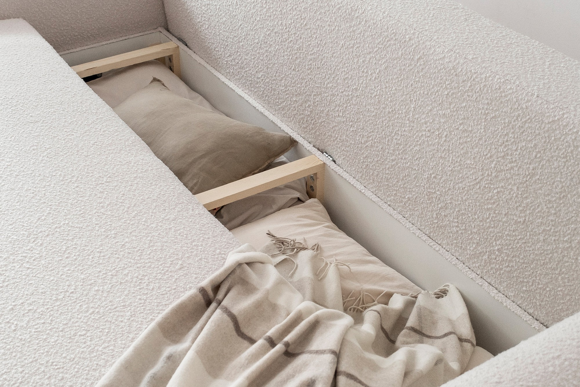 Tato pohovka není jen o vzhledu, ale také o funkčnosti. Díky možnosti rozkládání se snadno promění v pohodlné lůžko s plochou na spaní 200 x 146 cm, což je ideální pro hosty nebo pro ty, kteří si rádi dopřejí odpolední odpočinek. Navíc je vybavena praktickým úložným prostorem, který je ideální pro uschování ložního prádla, polštářů nebo dek.