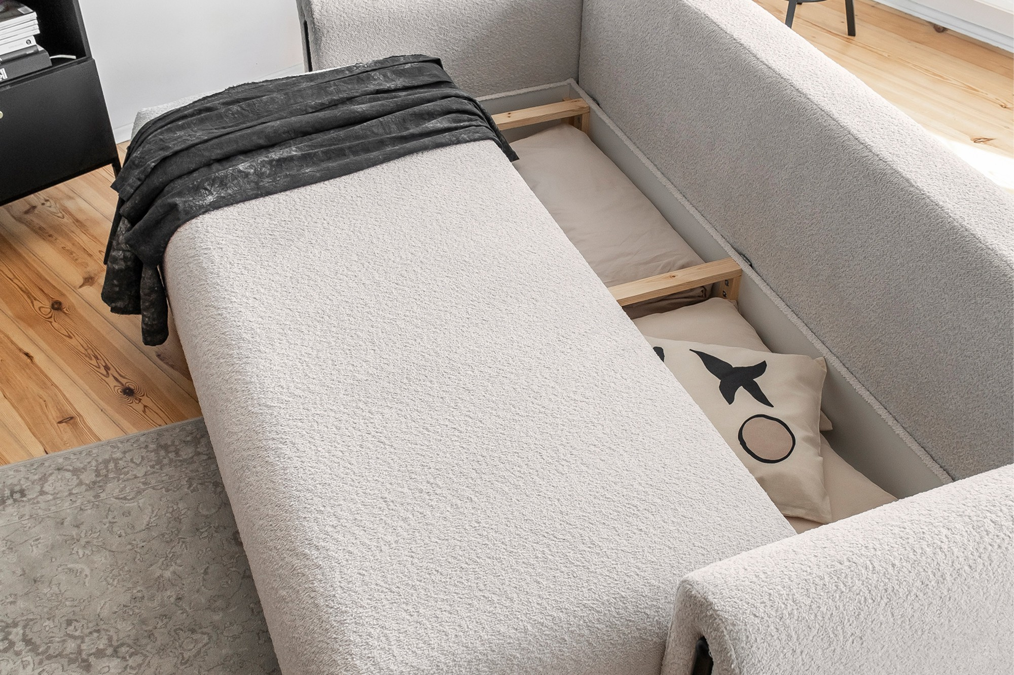 Tato pohovka není jen o vzhledu, ale také o funkčnosti. Díky možnosti rozkládání se snadno promění v pohodlné lůžko s plochou na spaní 200 x 146 cm, což je ideální pro hosty nebo pro ty, kteří si rádi dopřejí odpolední odpočinek. Navíc je vybavena praktickým úložným prostorem, který je ideální pro uschování ložního prádla, polštářů nebo dek.