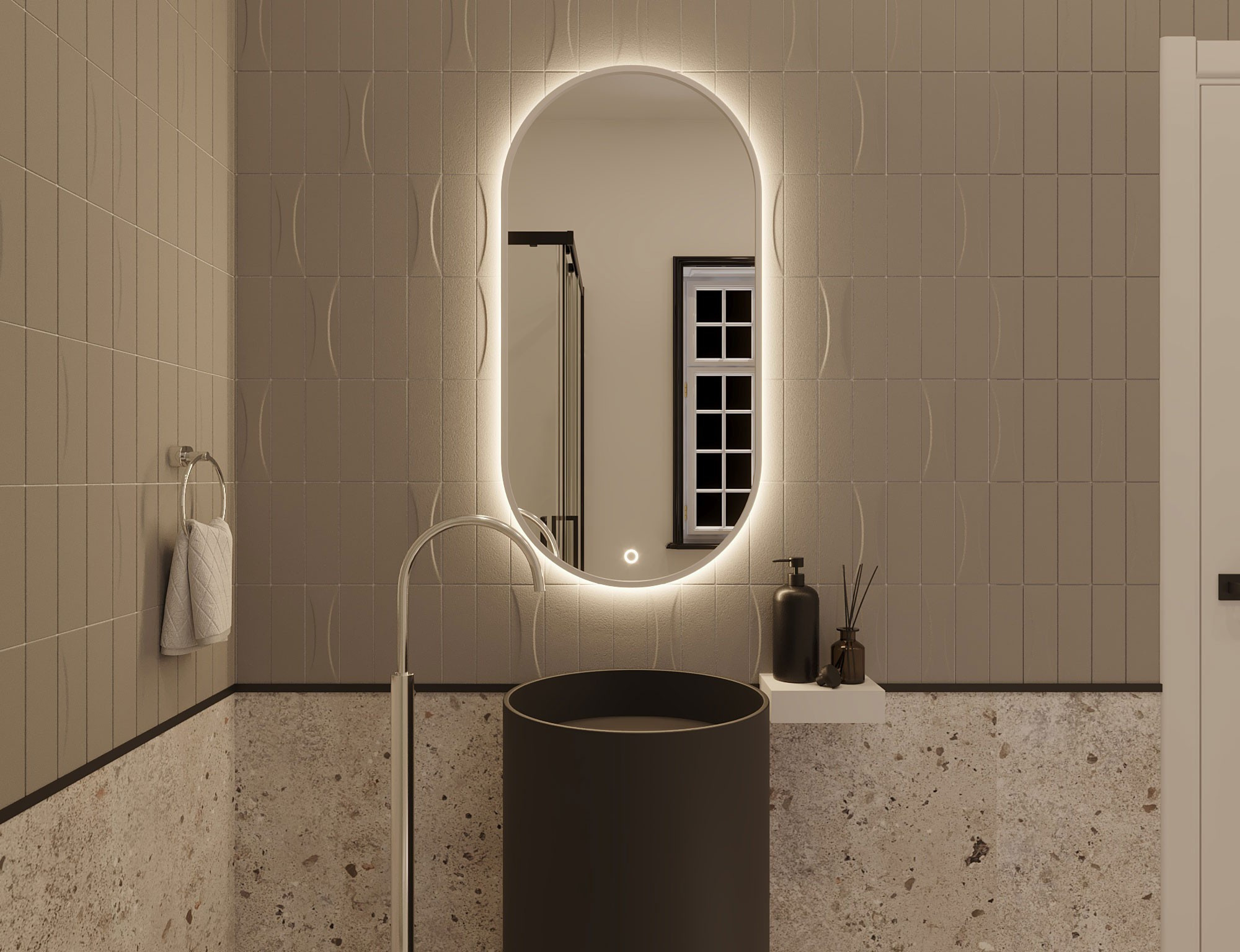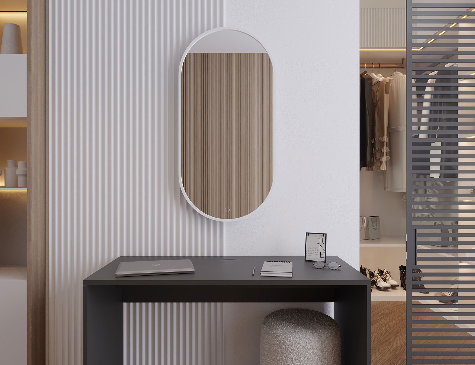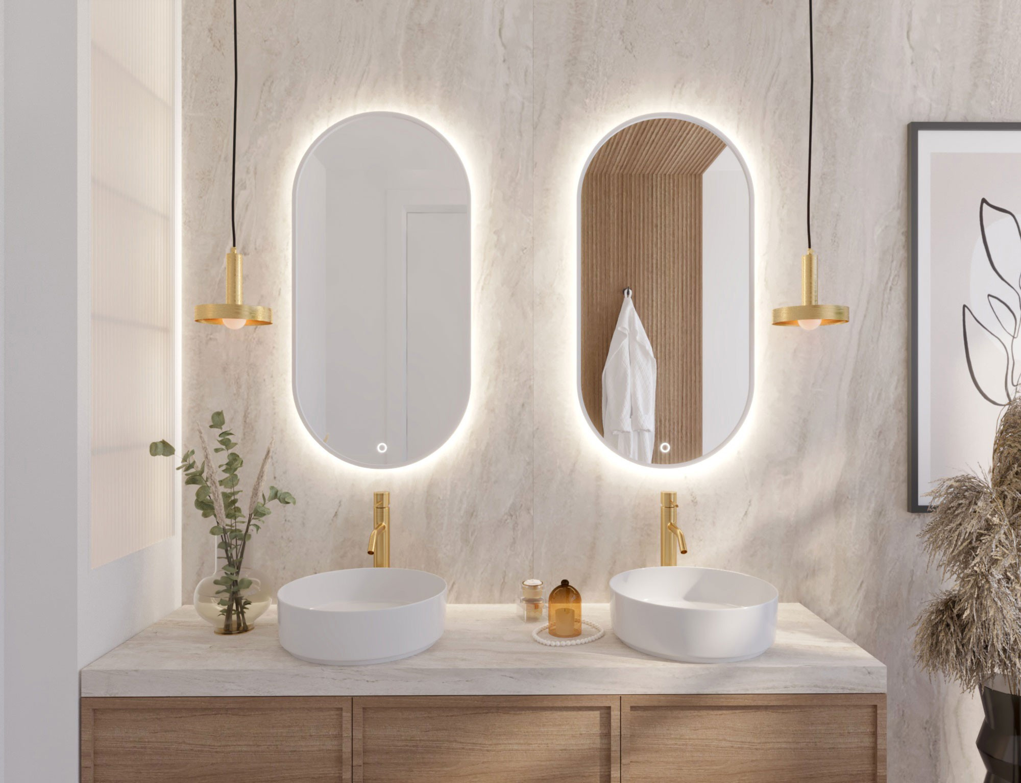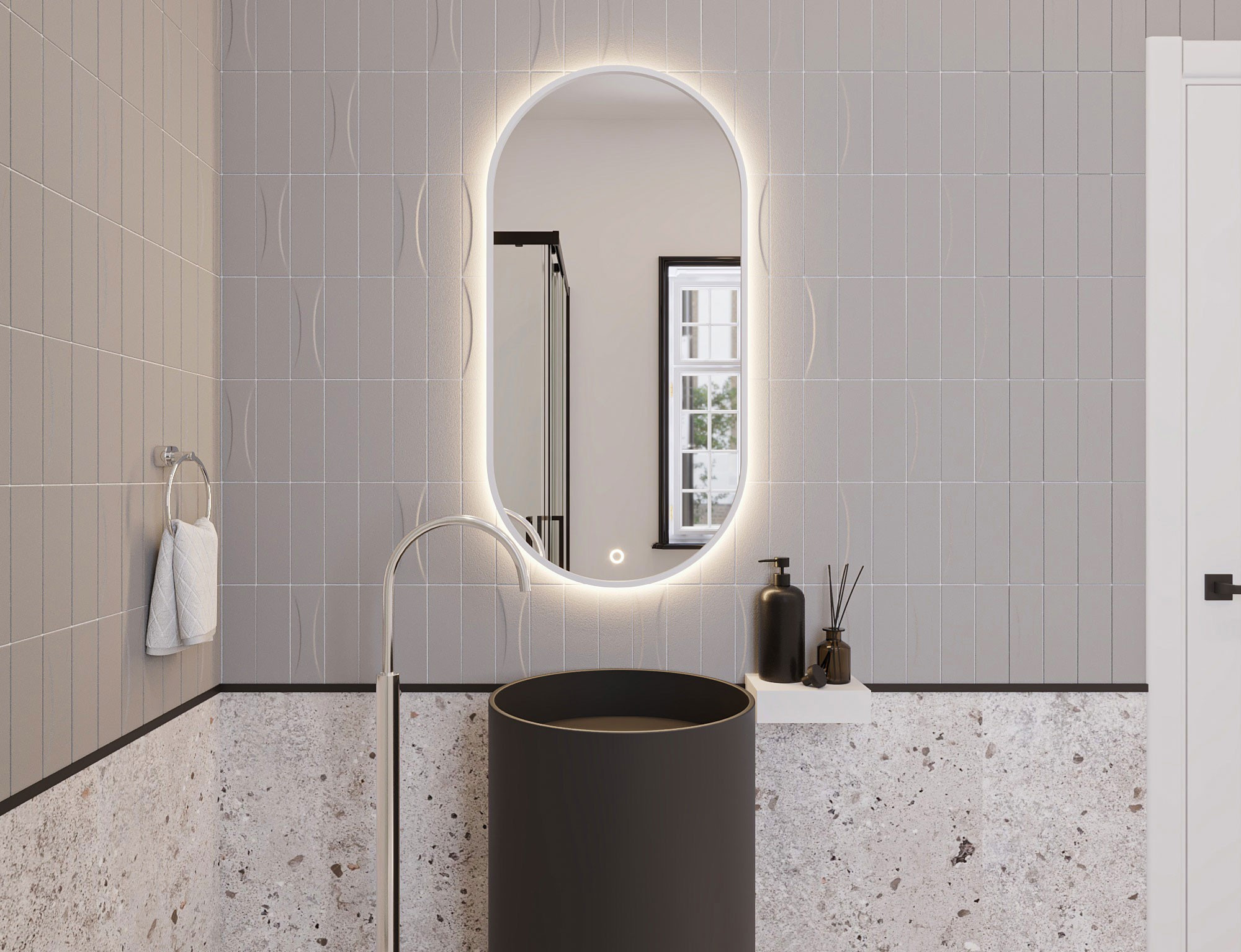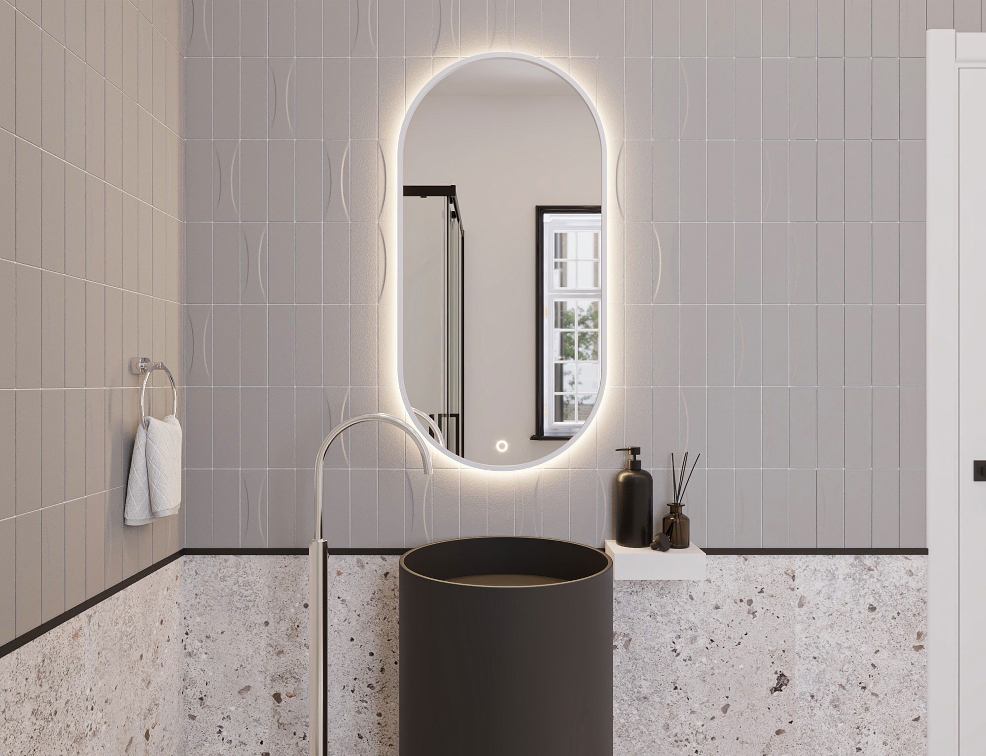 Arducati A je oválné zrcadlo s rozměry 50x100 cm a tloušťkou 2.5 cm. Je bílé barvy, což mu dodává univerzální a moderní vzhled, který se hodí do mnoha interiérů. Je vybaveno LED osvětlením s krytím IP45, které poskytuje rovnoměrné a energeticky úsporné osvětlení, ideální pro každodenní použití a přípravu na odchod. Díky nainstalovaným háčkům je zrcadlo snadné a pohodlné nainstalovat. Jeho pevná konstrukce zajišťuje odolnost a stabilitu, a je také ideální pro každodenní použití v koupelně, ložnici nebo na chodbě.