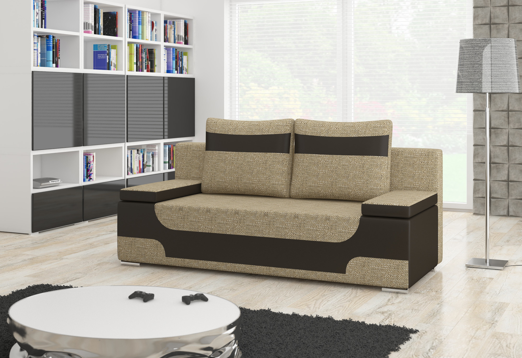 Area je moderní, funkční a originální pohovka pro fanoušky originálních řešení. Geometrický tvar, stylové dekorace na čalounění a polštářích, originální vložka v jiném odstínu čalounění umístěná ve spodní části pohovky, na stranách a polštářích - to vše dodává pohovce Area mimořádně originální nádech. Za zmínku stojí také široké područky, správně tvarované opěradlo a další prostorné polštáře, které zvyšují pohodlí při používání. Area je kus nábytku s rozměry 200 x 92 x 90 cm - pro odpočinek během dne, a díky funkci spaní - postel o rozměrech 200 x 140 cm s navíc prostorným úložným prostorem na ložní prádlo. Celek je podporován otevíracím mechanismem DL. Díky použití bonelu a pěny T25 je sedák pohovky mimořádně flexibilní a měkký. Jednoduchý tvar, elegantní konstrukce a moderní design - taková je pohovka Area. Jsme pro!