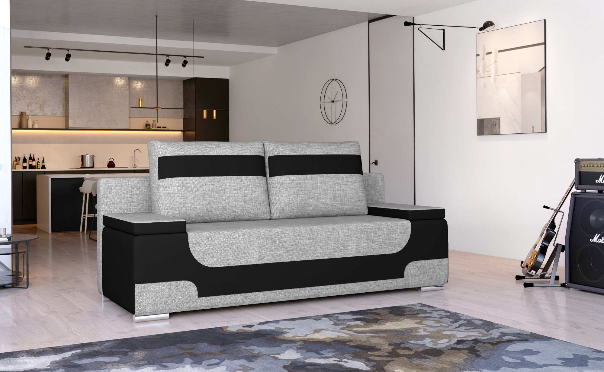 Area je moderní, funkční a originální pohovka pro fanoušky originálních řešení. Geometrický tvar, stylové dekorace na čalounění a polštářích, originální vložka v jiném odstínu čalounění umístěná ve spodní části pohovky, na stranách a polštářích - to vše dodává pohovce Area mimořádně originální nádech. Za zmínku stojí také široké područky, správně tvarované opěradlo a další prostorné polštáře, které zvyšují pohodlí při používání. Area je kus nábytku s rozměry 200 x 92 x 90 cm - pro odpočinek během dne, a díky funkci spaní - postel o rozměrech 200 x 140 cm s navíc prostorným úložným prostorem na ložní prádlo. Celek je podporován otevíracím mechanismem DL. Díky použití bonelu a pěny T25 je sedák pohovky mimořádně flexibilní a měkký. Jednoduchý tvar, elegantní konstrukce a moderní design - taková je pohovka Area. Jsme pro!