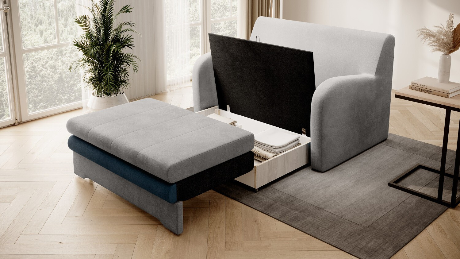 Pohovka Ario s funkcí spaní je odpovědí na potřeby moderních bytů. Jeho čalounění dostupné v mnoha barvách a látkách, stejně jako minimalistický design, umožňují celku dokonale zapadnout do modernistického uspořádání. Kompaktní rozměry zajistí, že konstrukce nezabere příliš mnoho místa - lze ji umístit do pokoje pro teenagery, hostinského pokoje nebo menšího obývacího pokoje. Malý, 1.5 cm plastové nožky chrání podlahu před poškrábáním. Zajímavou volbou je použití pěny T28 a pěny T25. Taková kombinace poskytuje struktuře značnou měkkost a pružnost, díky čemuž se nedeformuje. Ario nabízí snadno použitelnou funkci spaní (plocha 111 cm x 196 cm) a prostorný úložný prostor na ložní prádlo o rozměrech 85 cm x 61 cm x 13 cm. Proto je ideální jak pro příležitostné, tak každodenní spaní.
