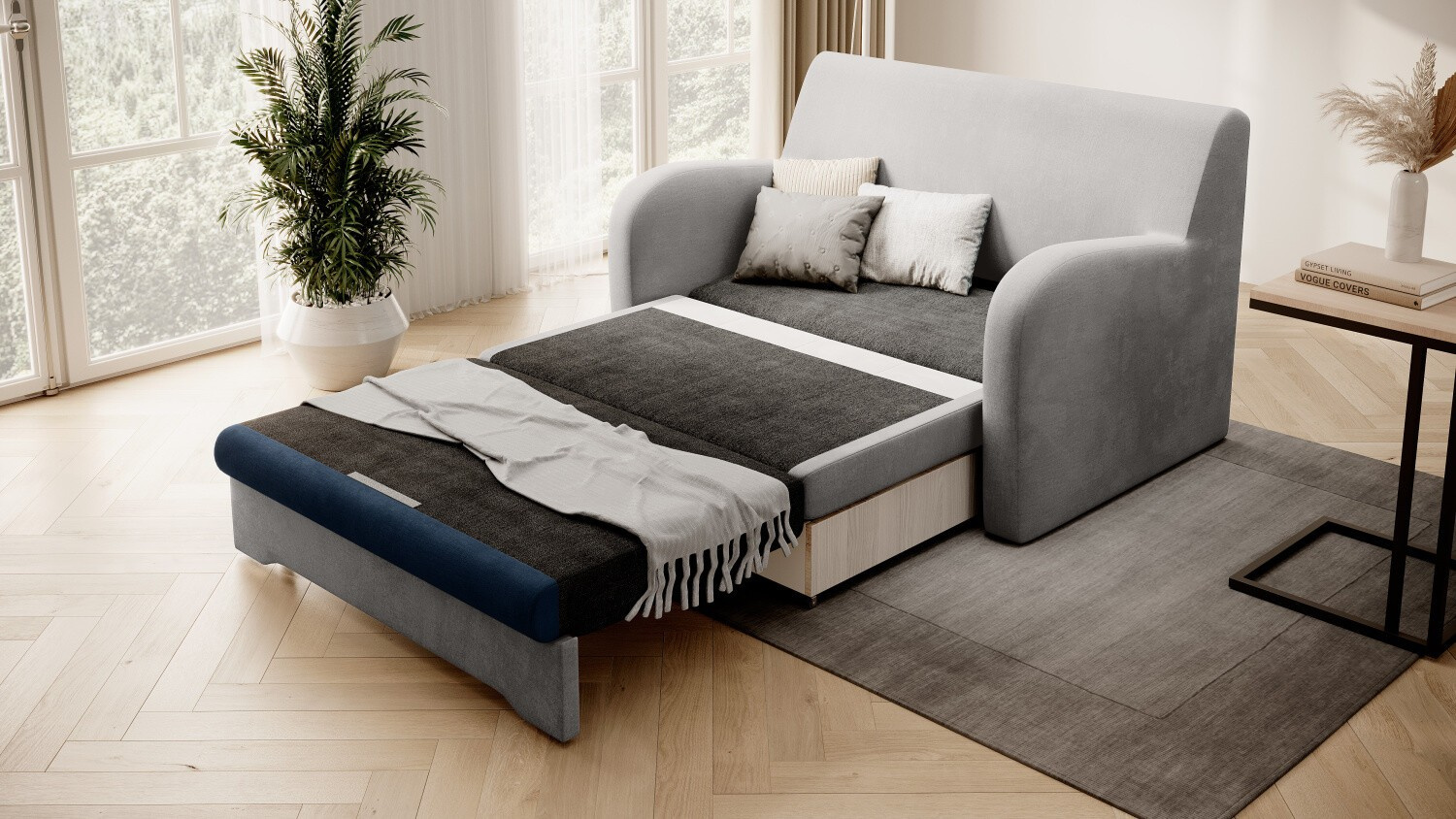 Pohovka Ario s funkcí spaní je odpovědí na potřeby moderních bytů. Jeho čalounění dostupné v mnoha barvách a látkách, stejně jako minimalistický design, umožňují celku dokonale zapadnout do modernistického uspořádání. Kompaktní rozměry zajistí, že konstrukce nezabere příliš mnoho místa - lze ji umístit do pokoje pro teenagery, hostinského pokoje nebo menšího obývacího pokoje. Malý, 1.5 cm plastové nožky chrání podlahu před poškrábáním. Zajímavou volbou je použití pěny T28 a pěny T25. Taková kombinace poskytuje struktuře značnou měkkost a pružnost, díky čemuž se nedeformuje. Ario nabízí snadno použitelnou funkci spaní (plocha 111 cm x 196 cm) a prostorný úložný prostor na ložní prádlo o rozměrech 85 cm x 61 cm x 13 cm. Proto je ideální jak pro příležitostné, tak každodenní spaní.