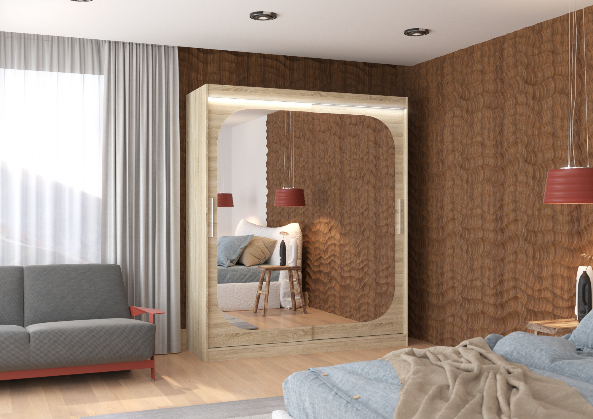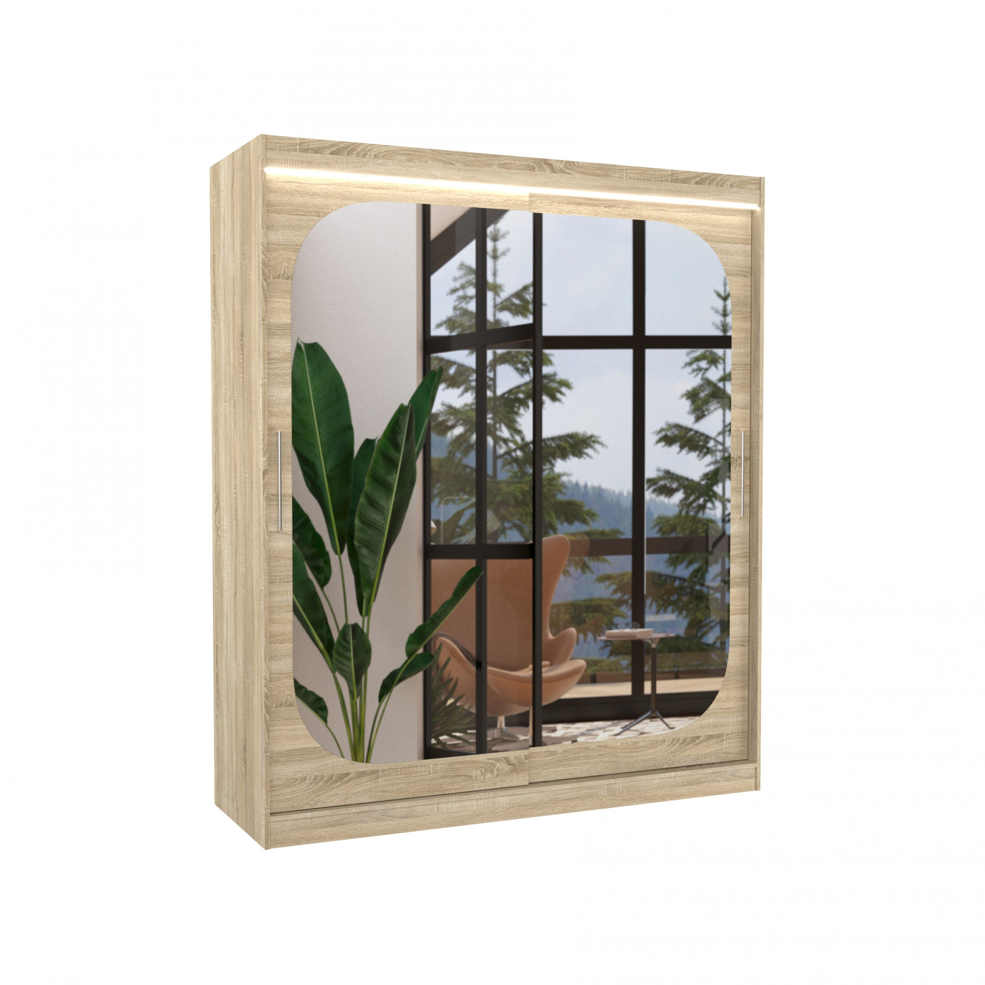 Posuvná skříň se zrcadlem a LED osvětlením ARIZONA 180 Sonoma+Sonoma