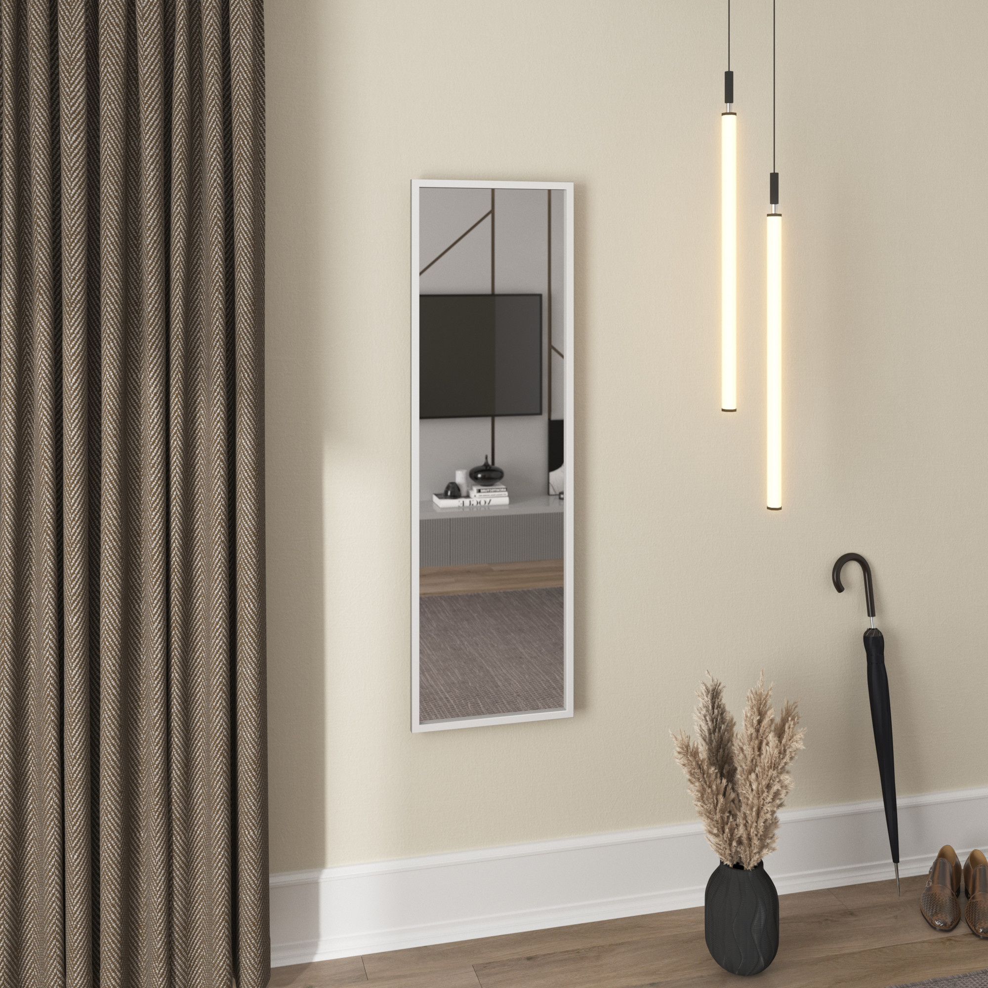 Dekorativní zrcadlo Arizona pomáhá proměnit jakýkoli prostor v domě. Začlenění tohoto kousku do interiéru dodává klasický styl a jeho rozměry: 40 x 130 centimetrů jsou ideální pro většinu moderních prostor. Zrcadlo je k dispozici v bílém a černém rámu vyrobeném ze dřeva. Součástí balení jsou kolíky pro zavěšení nábytku, které usnadňují, urychlují a zpříjemňují jeho instalaci. Obdélníkový tvar a výška produktu přesahující jeden metr vám umožní vidět celou siluetu v odrazu zrcadla. Také se staráme o co nejlepší balení našich zrcadel, aby dorazila v perfektním stavu. Za tímto účelem je zrcadlo chráněno HDF deskou a ochrannou fólií. Polystyrenové rohy a kanály, ve kterých je zrcadlo Arizona zabaleno, chrání a izolují všechny druhy prvků citlivých na nárazy a otřesy. Další výhodou závěsného zrcadla Arizona je, že nepřekáží při úklidu domu, protože nezabírá místo na podlaze.