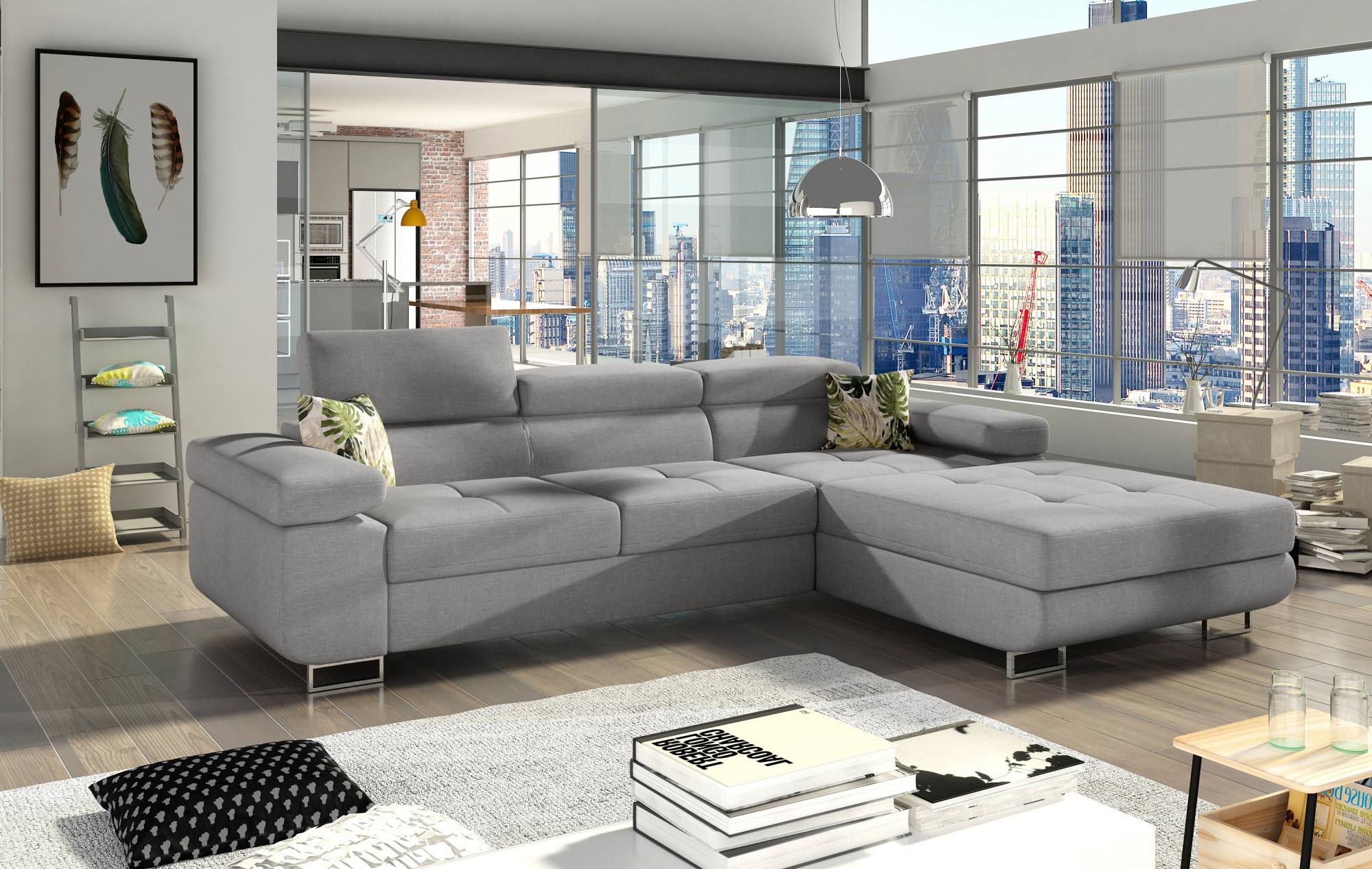 Armando je stylová, funkční a především elegantní rohová rozkládací pohovka pro náročné znalce pohodlí. Vysoký komfort odpočinku je zvýšen širokými opěrkami rukou, dobře tvarovaným opěradlem a nastavitelnými, vysokými opěrkami hlavy. Sedák prostorné rohové jednotky s rozměry 280 x 205 x 90 cm je vyroben z pěny T30, která zajišťuje maximální pohodlí a pružnost. Rohová sedací souprava ve tvaru L je vybavena funkcí spaní s plochou 125 x 198 cm. Kromě toho má také velký úložný prostor na ložní prádlo. Díky jemným detailům prošívání, elegantním stehům a vysokým chromovým nohám je rohová jednotka udržována v moderním stylu dokončení. Armando je k dispozici v mnoha barvách. Stojí za to mít takový kus nábytku ve svém domově.