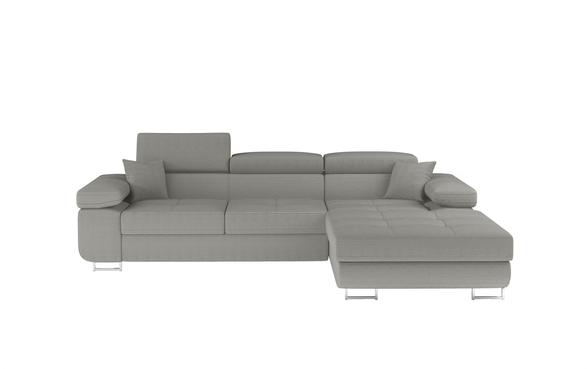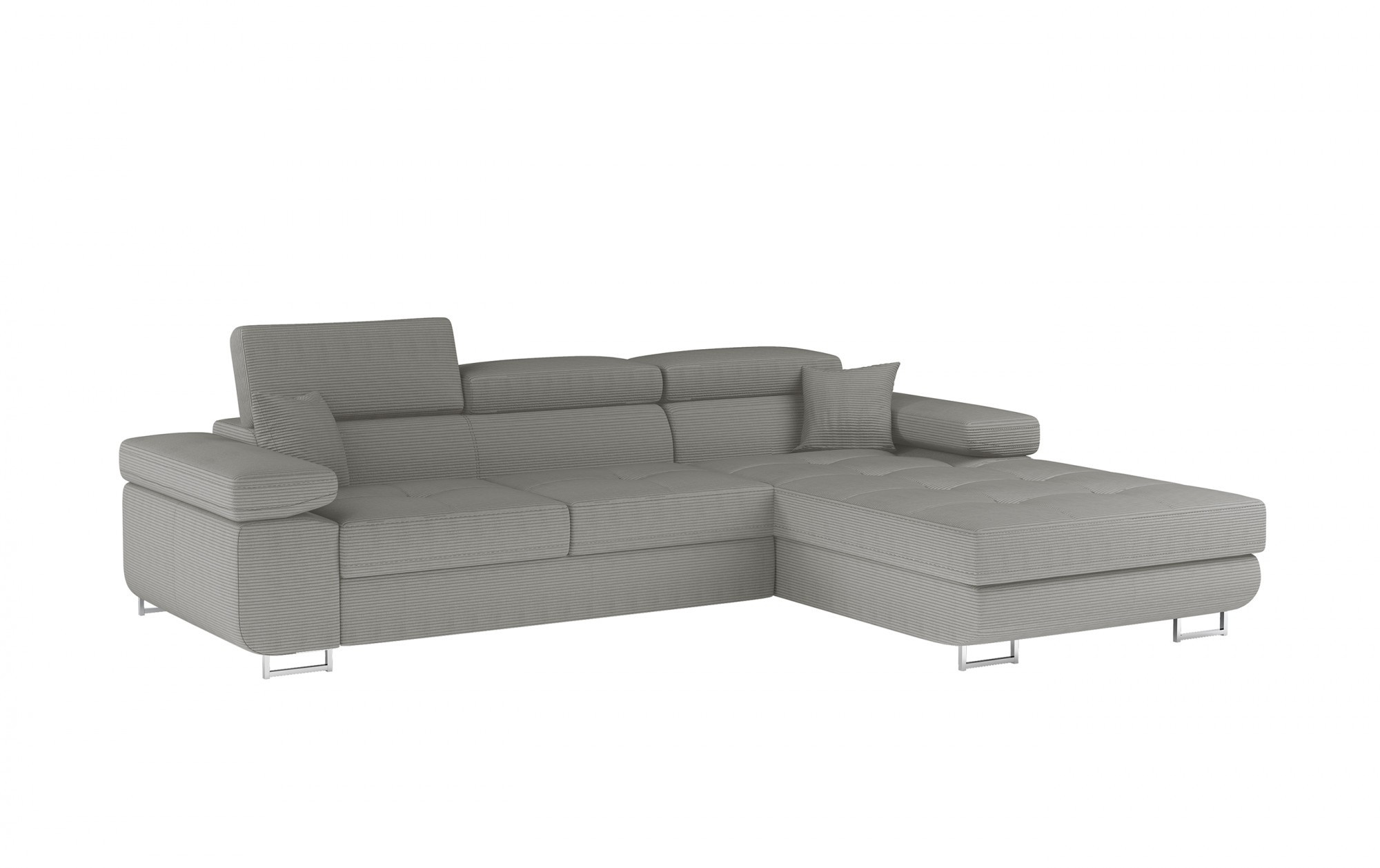 Armando je stylová, funkční a především elegantní rohová rozkládací pohovka pro náročné znalce pohodlí. Vysoký komfort odpočinku je zvýšen širokými opěrkami rukou, dobře tvarovaným opěradlem a nastavitelnými, vysokými opěrkami hlavy. Sedák prostorné rohové jednotky s rozměry 280 x 205 x 90 cm je vyroben z pěny T30, která zajišťuje maximální pohodlí a pružnost. Rohová sedací souprava ve tvaru L je vybavena funkcí spaní s plochou 125 x 198 cm. Kromě toho má také velký úložný prostor na ložní prádlo. Díky jemným detailům prošívání, elegantním stehům a vysokým chromovým nohám je rohová jednotka udržována v moderním stylu dokončení. Armando je k dispozici v mnoha barvách. Stojí za to mít takový kus nábytku ve svém domově.